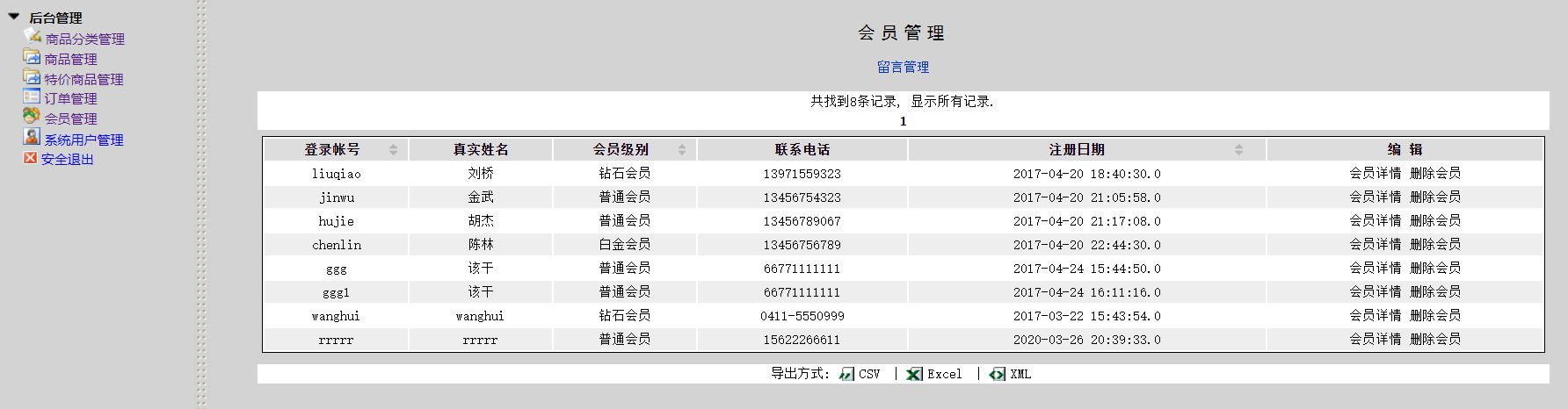 |--会员信息管理 主要实现会员信息的查询,和删除功能