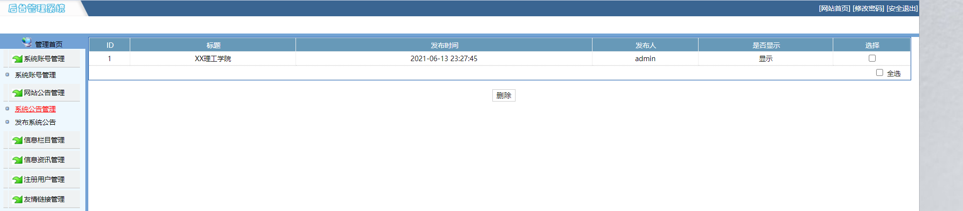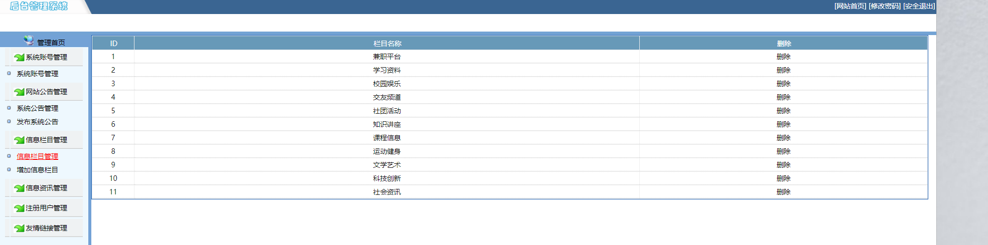 《javaweb校园信息管理系统》该项目采用技术jsp、servlet、jdbc、tomcat服务器、mysql数据库 ,项目含有源码、文档、配套开发软件、软件安装教程、项目发布教程
