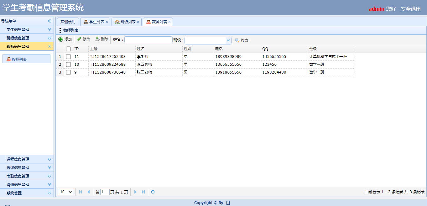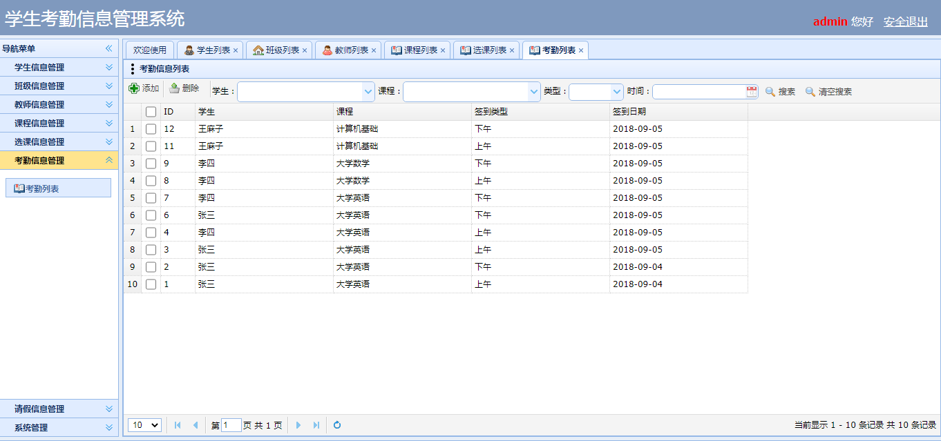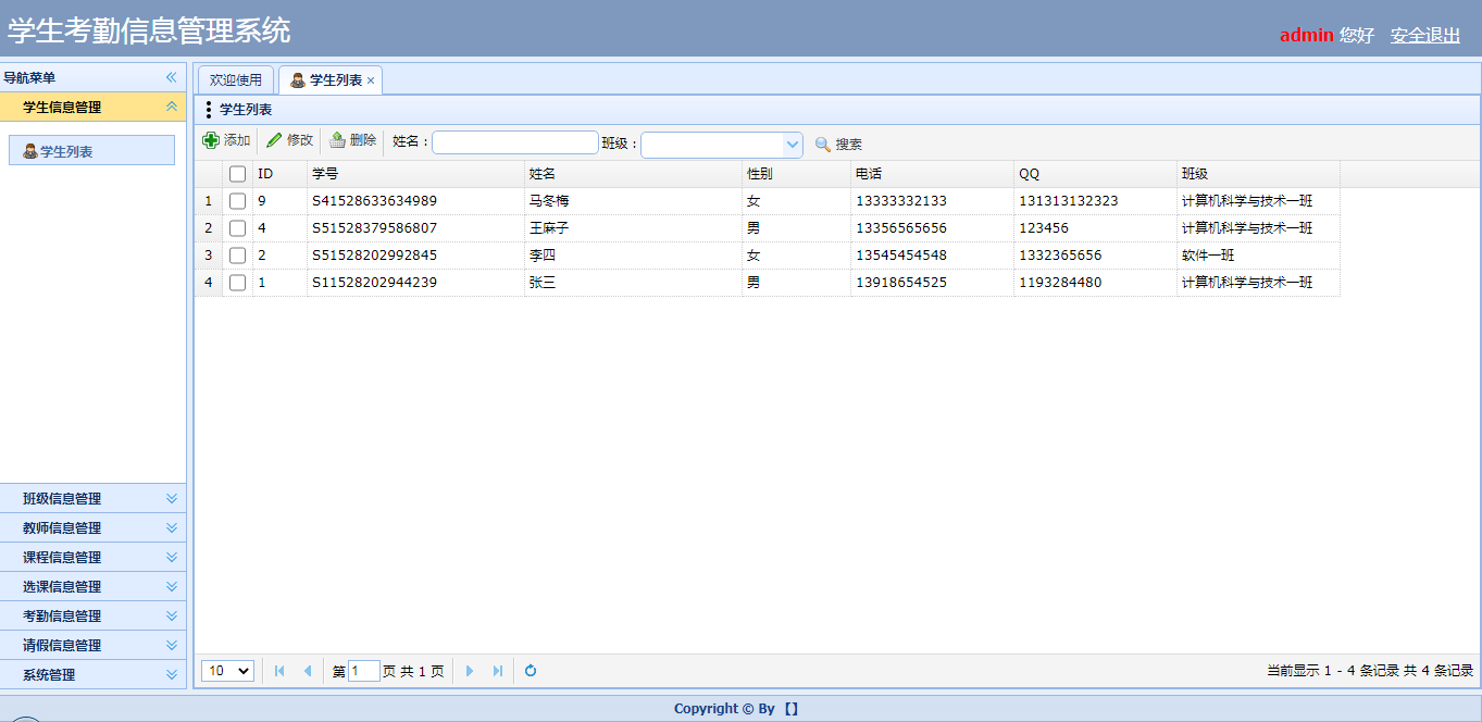 《javaweb学生签到考勤系统》该项目采用技术:mysql+Servlet+Jsp+Jdbc+dbutils+EasyUI+jQuery+Ajax等相关技术,项目含有源码、文档、配套开发软件、软件安装教程、项目发布教程等