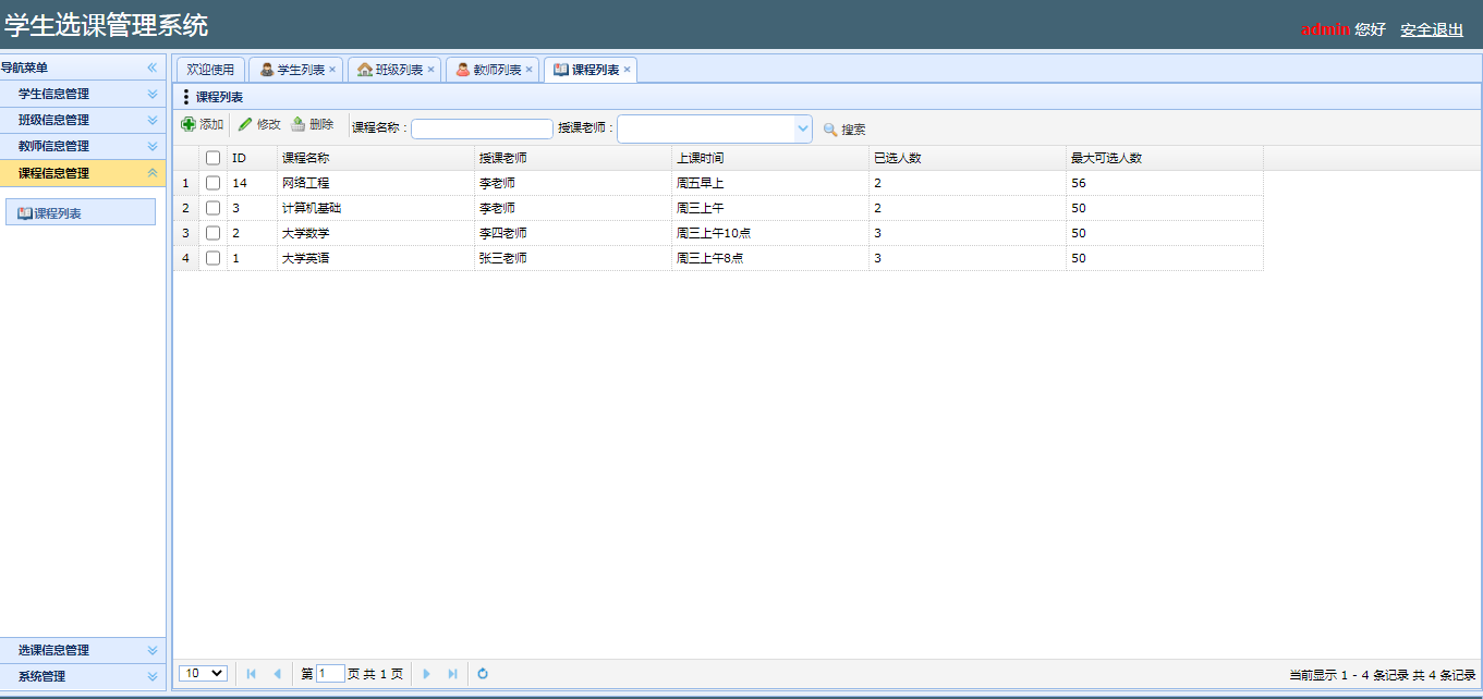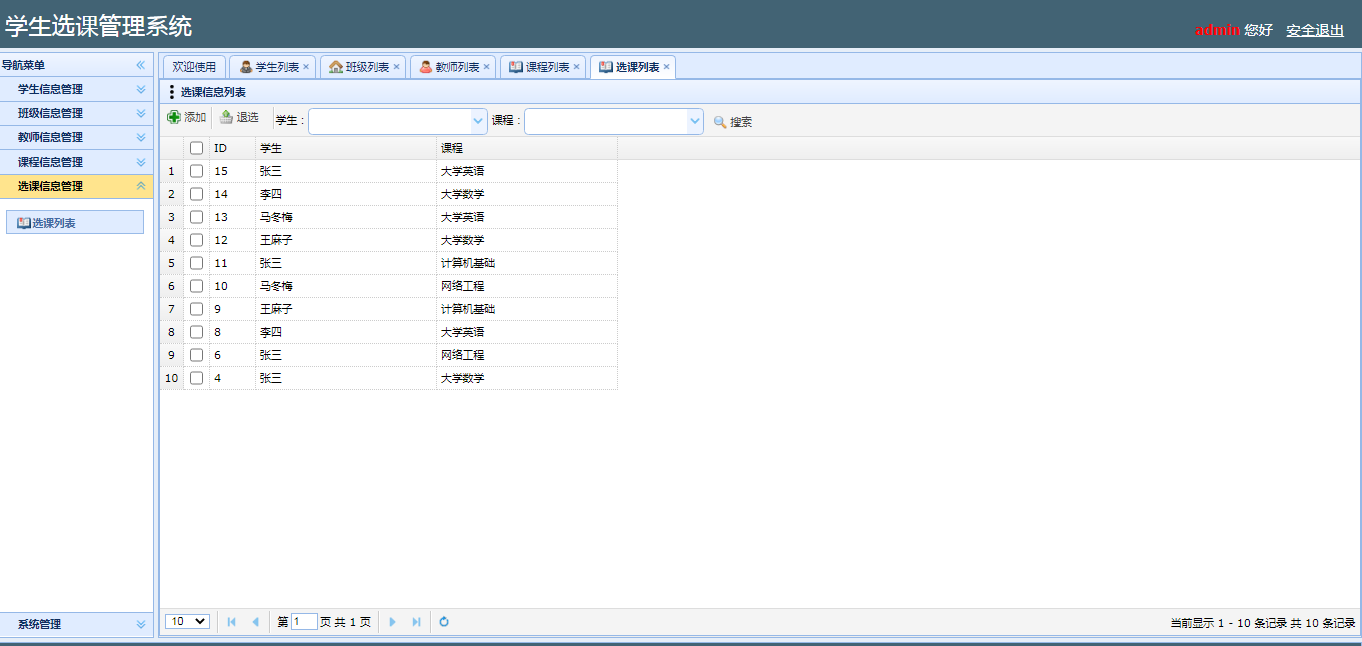 《基于javaweb实现的学生选课管理系统》该项目采用技术:jsp +servlet+jdbc+mysql+css+js等相关技术,项目含有源码、文档、配套开发软件、软件安装教程、项目发布教程等