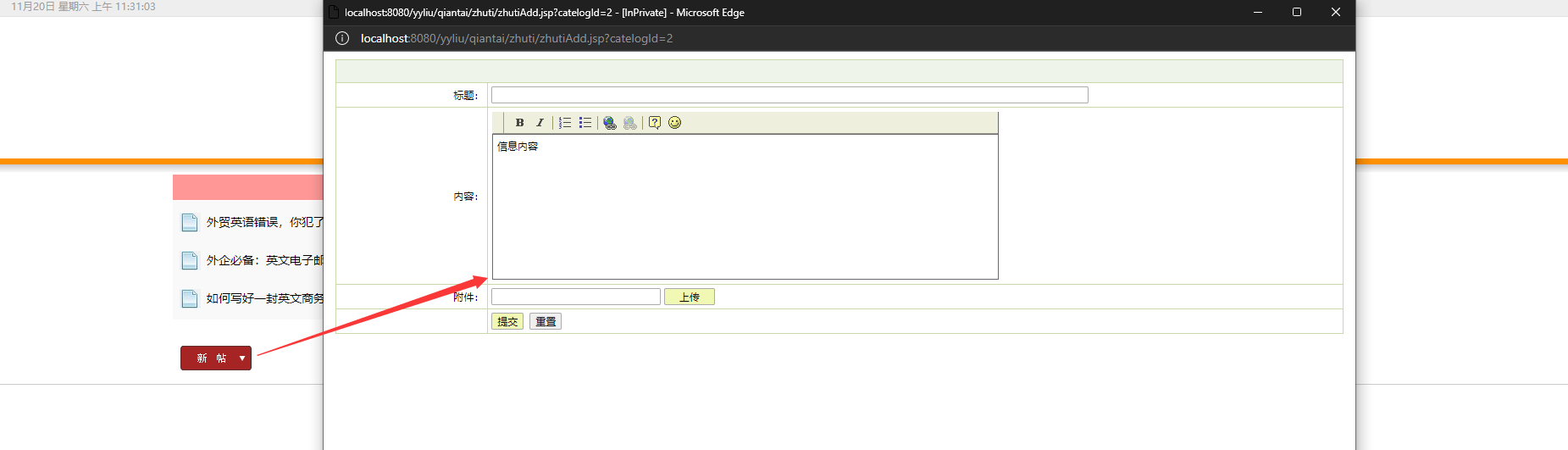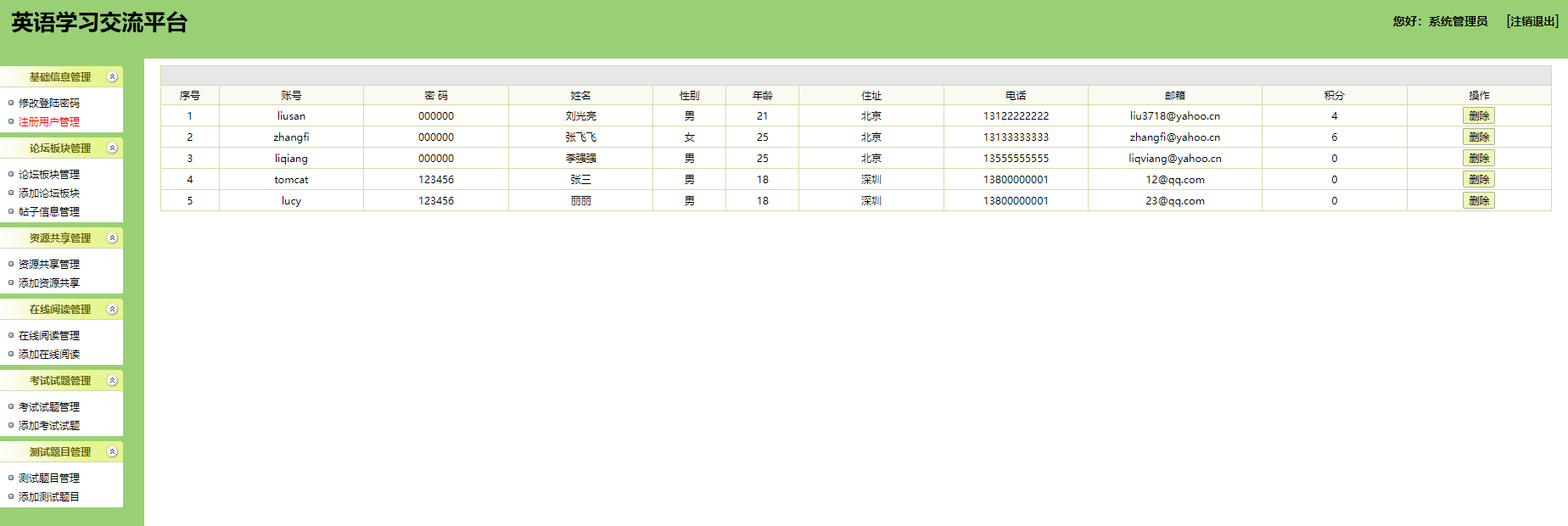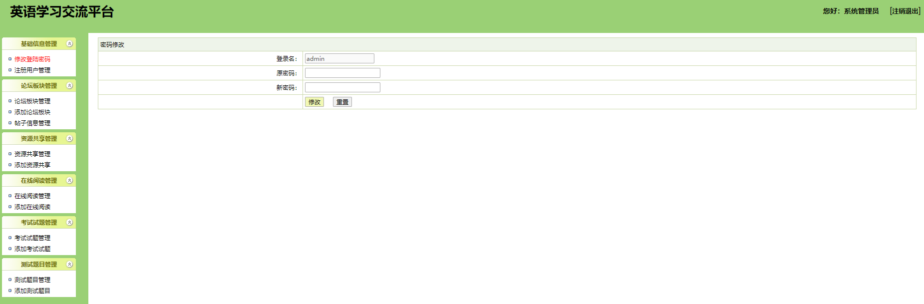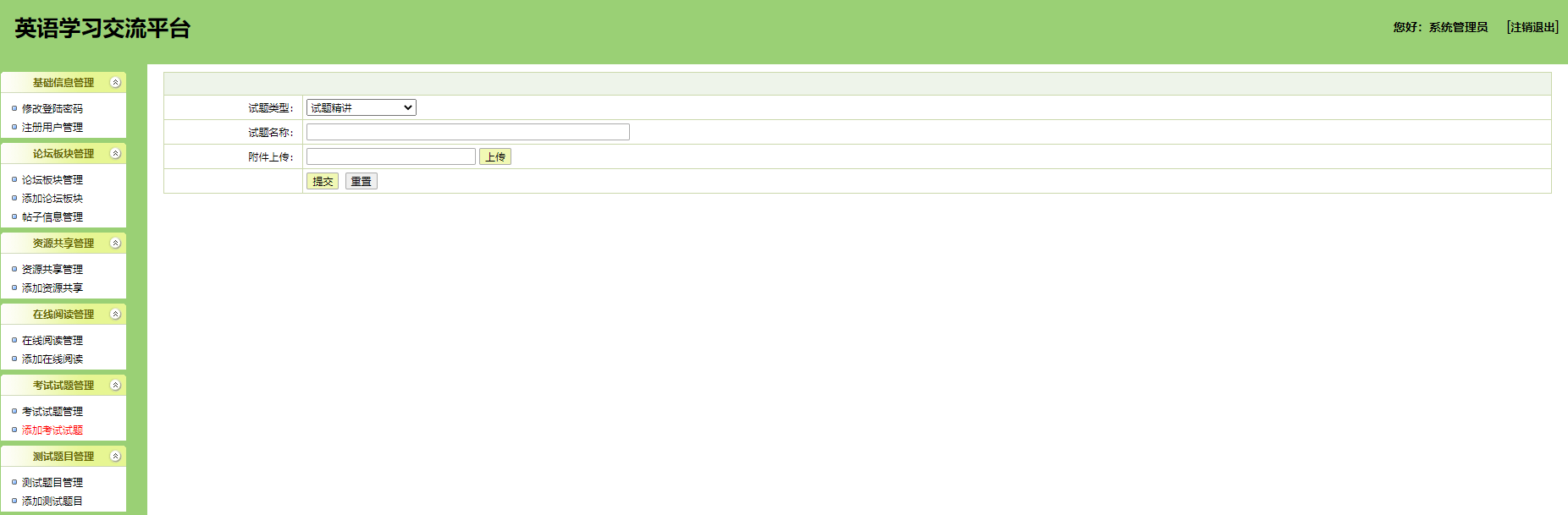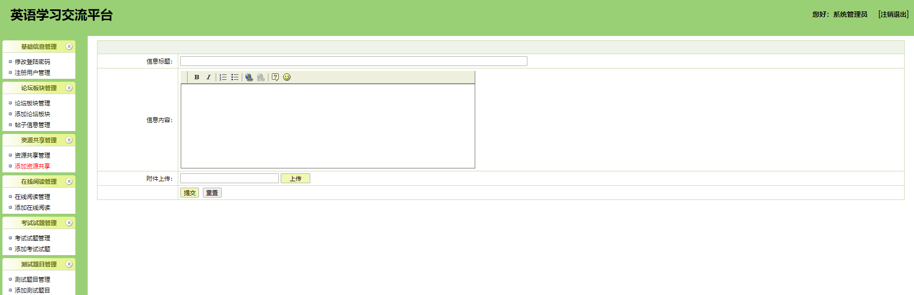 本系统为基于jsp+mysql的在线英语学习网站,包含用户、管理员登录权限,功能如下: