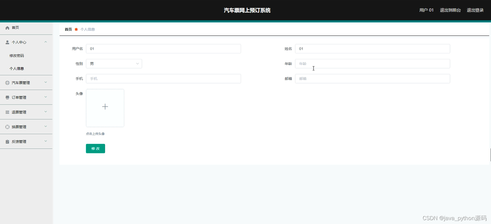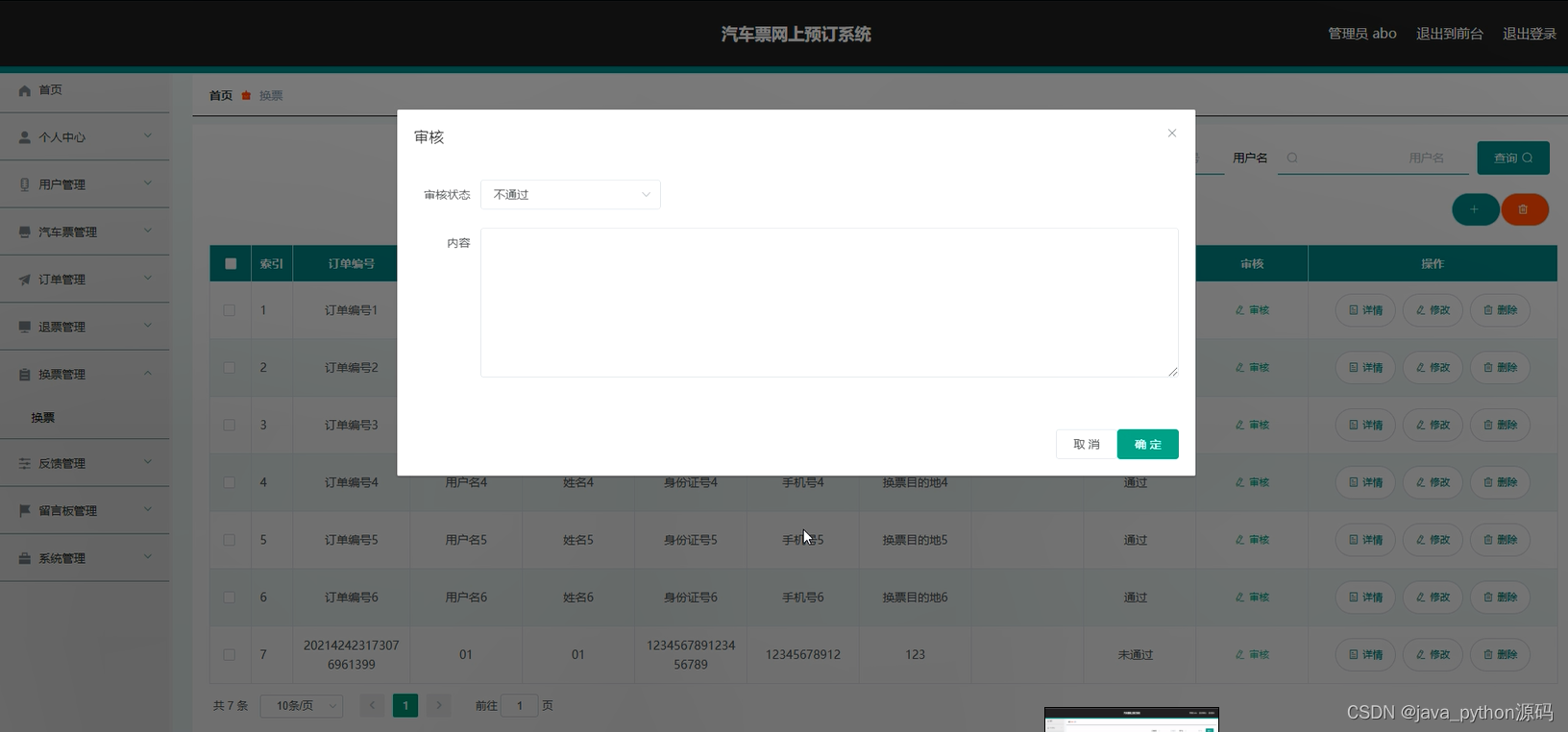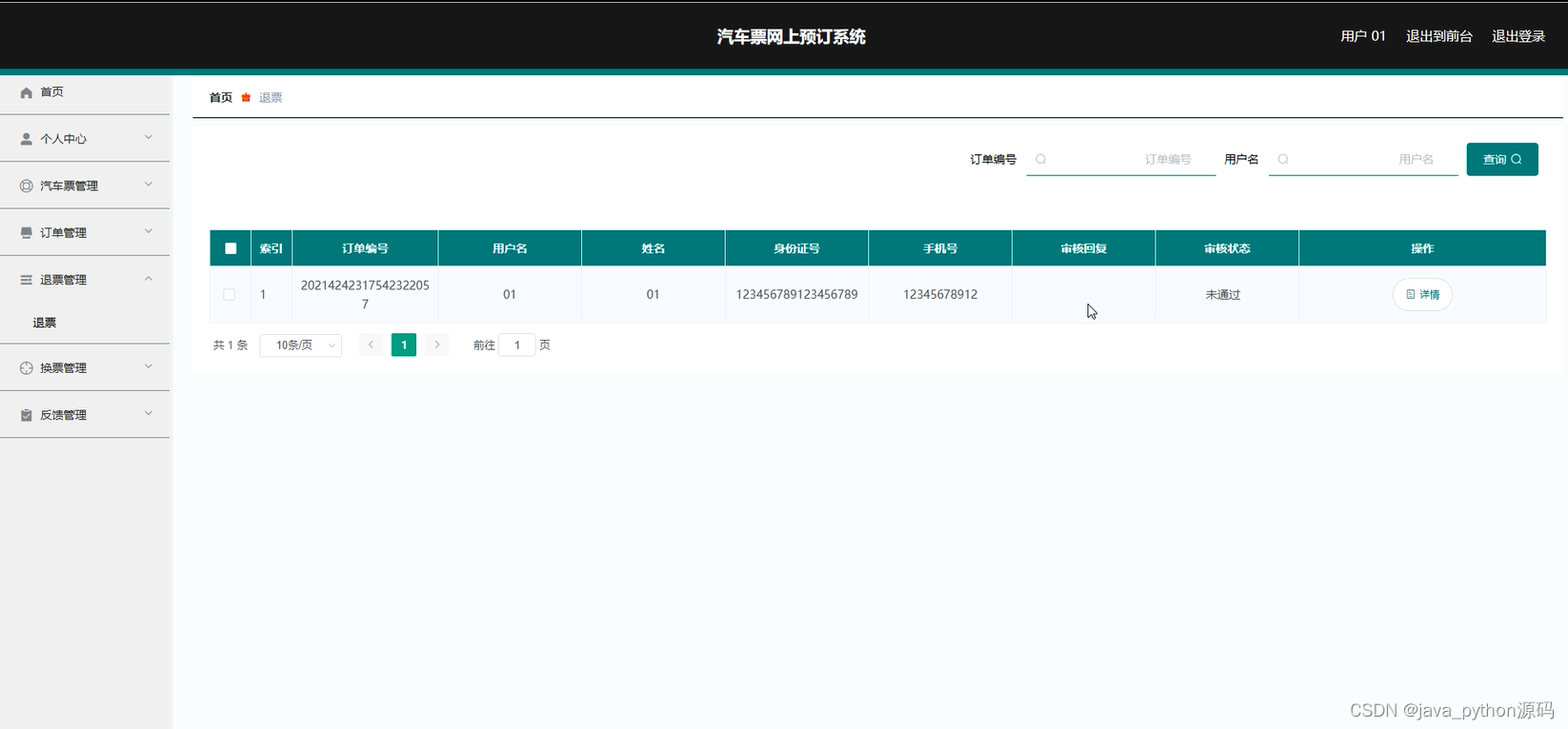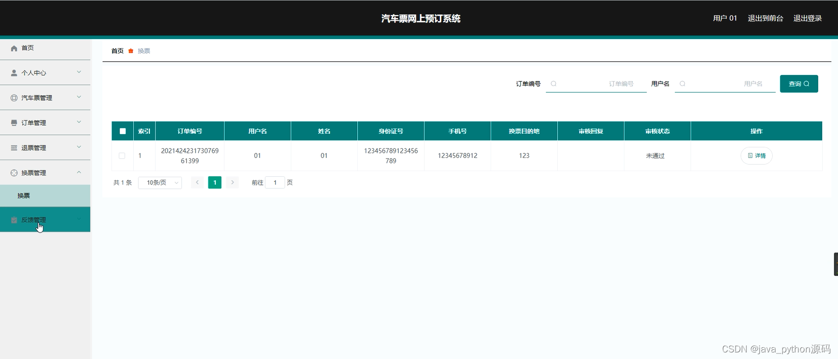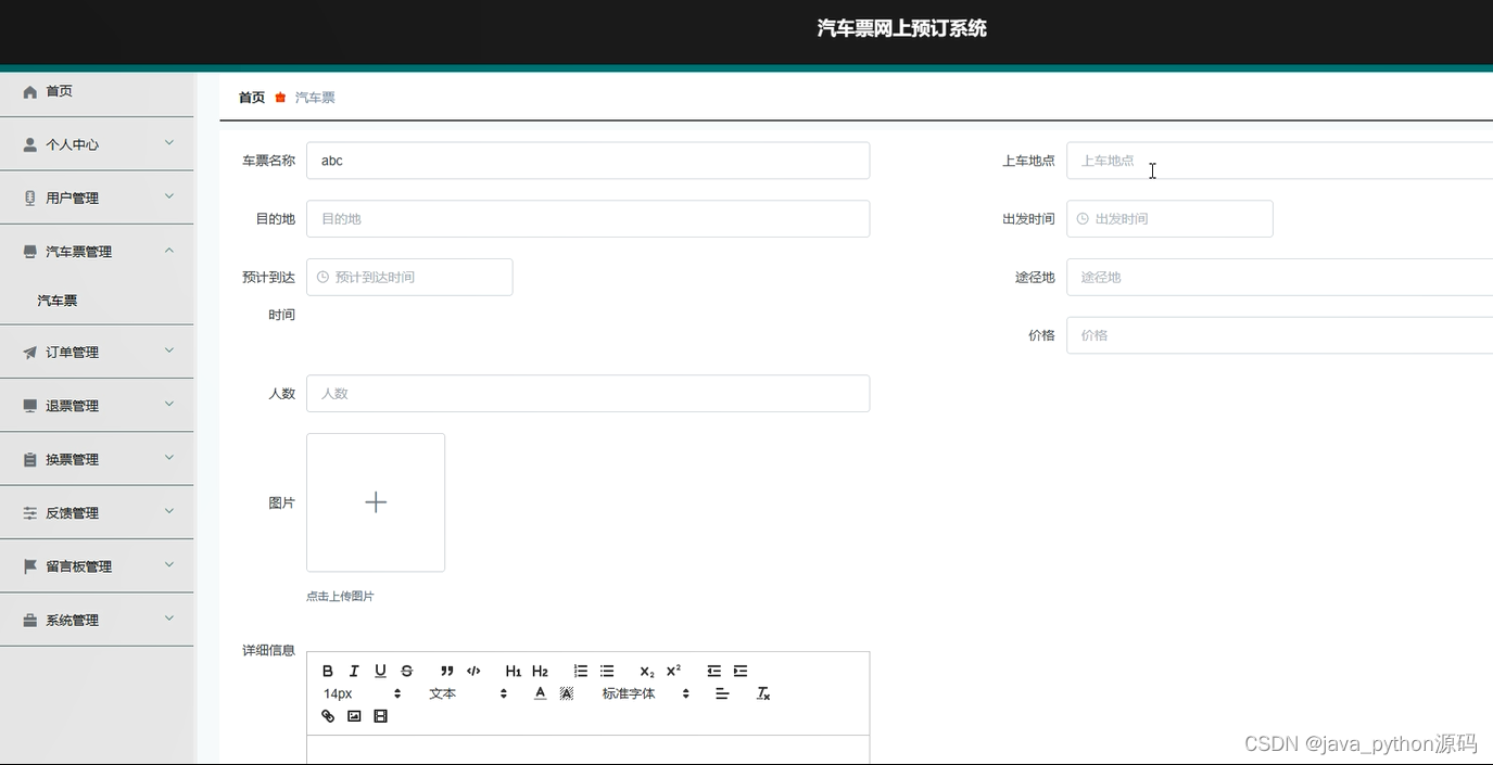 管理端功能有:用户管理、汽车票管理、订单管理、退票管理、换票管理、反馈管理、留言板管理等。