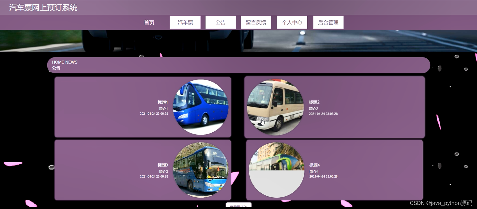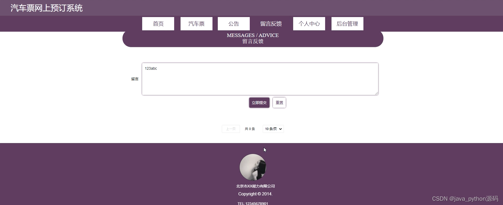 用户端功能有:首页公告查看、汽车票查询、汽车票查看、汽车票购买、在线留言,登录后台进行退票、换票申请等操作