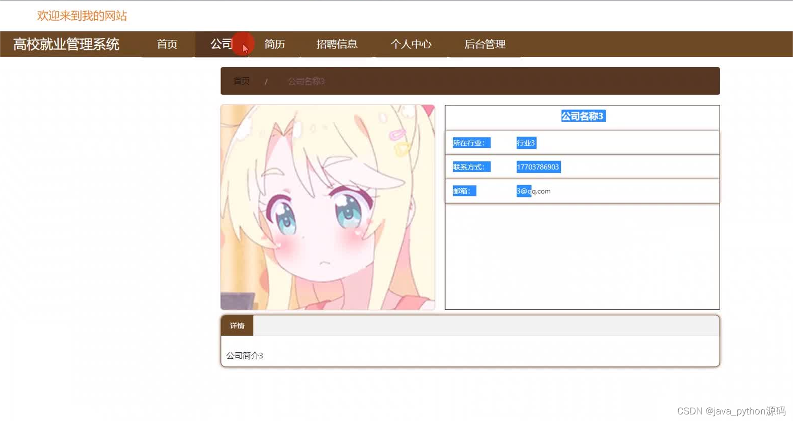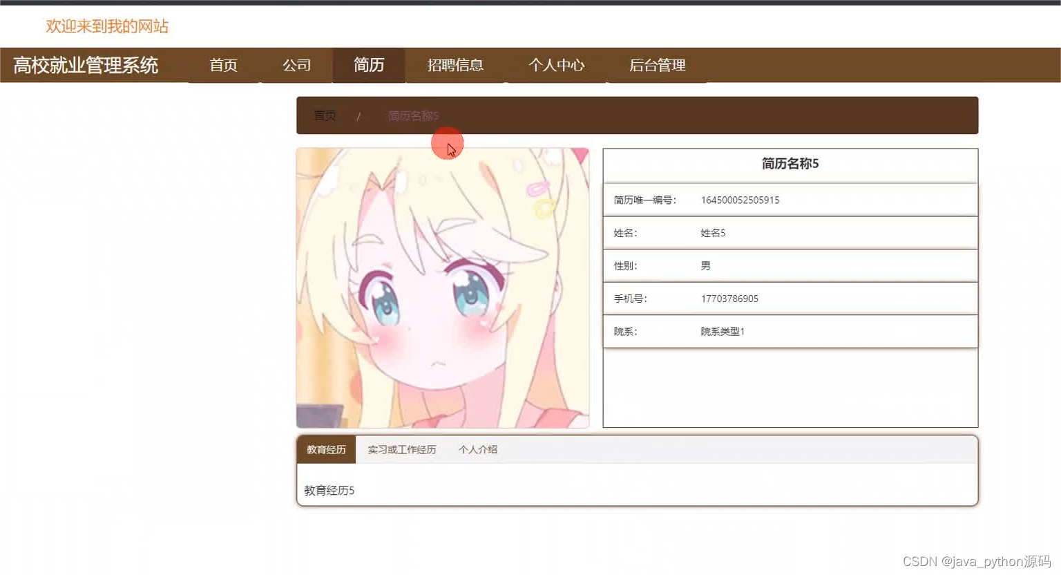 《高校就业管理系统》该项目含有源码、论文等资料、配套开发软件、软件安装教程、项目发布教程等。系统功能完整,适合作为毕业设计、课程设计、数据库大作业学习使用。