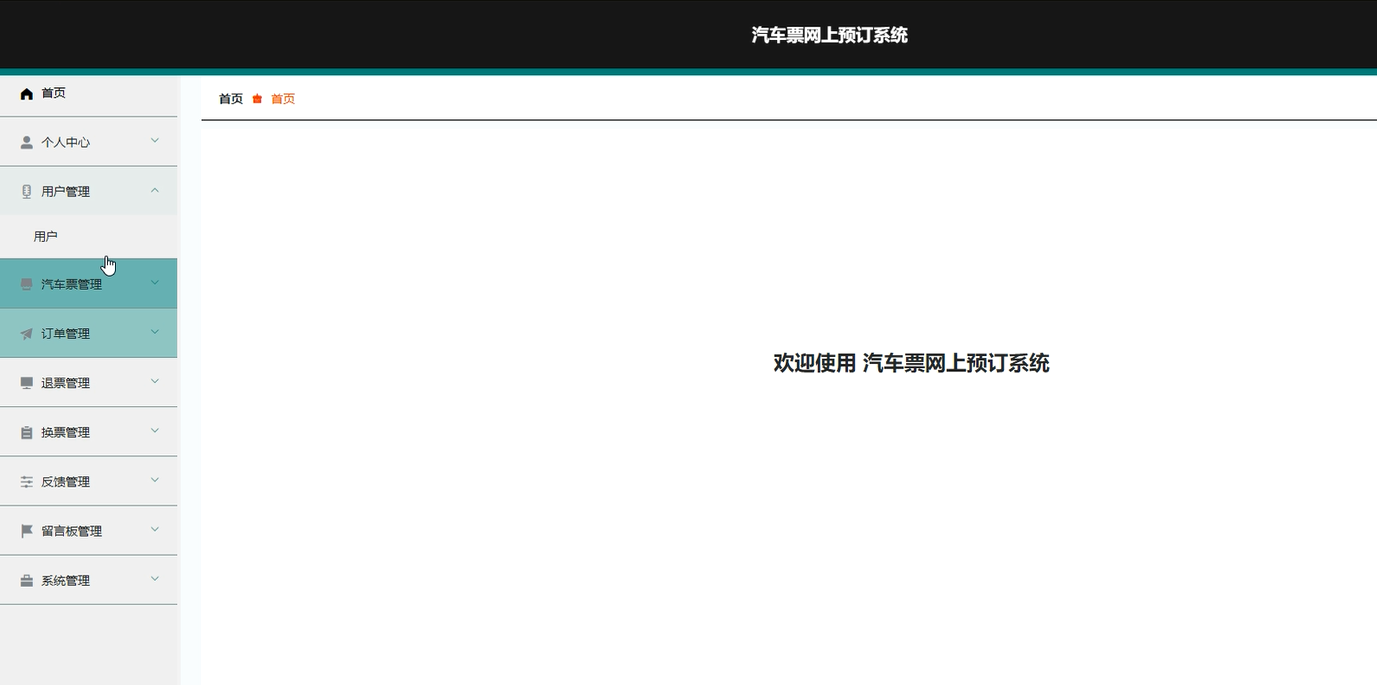 管理端功能有:用户管理、汽车票管理、订单管理、退票管理、换票管理、反馈管理、留言板管理等。