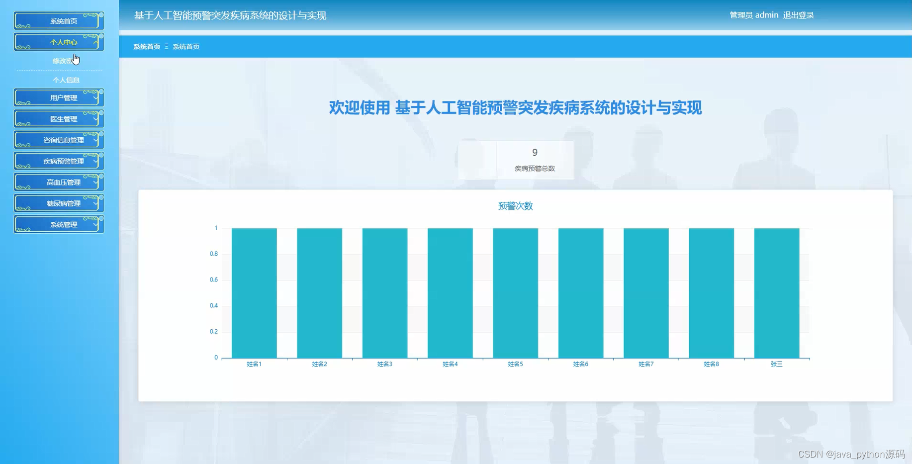 总之,慢性疾病诊疗与预警系统课题具有重要的背景、目的和意义,对于改善慢性疾病管理、促进医疗信息化发展和提高个人和社会的健康水平具有重要的意义。