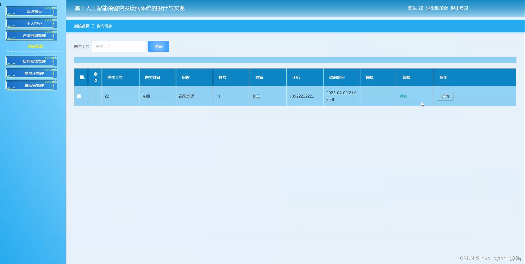 - 促进医疗资源合理利用:慢性疾病诊疗与预警系统可以帮助医生更好地利用医疗资源,提高诊疗效率,减少医疗错误和重复检查,降低医疗成本。