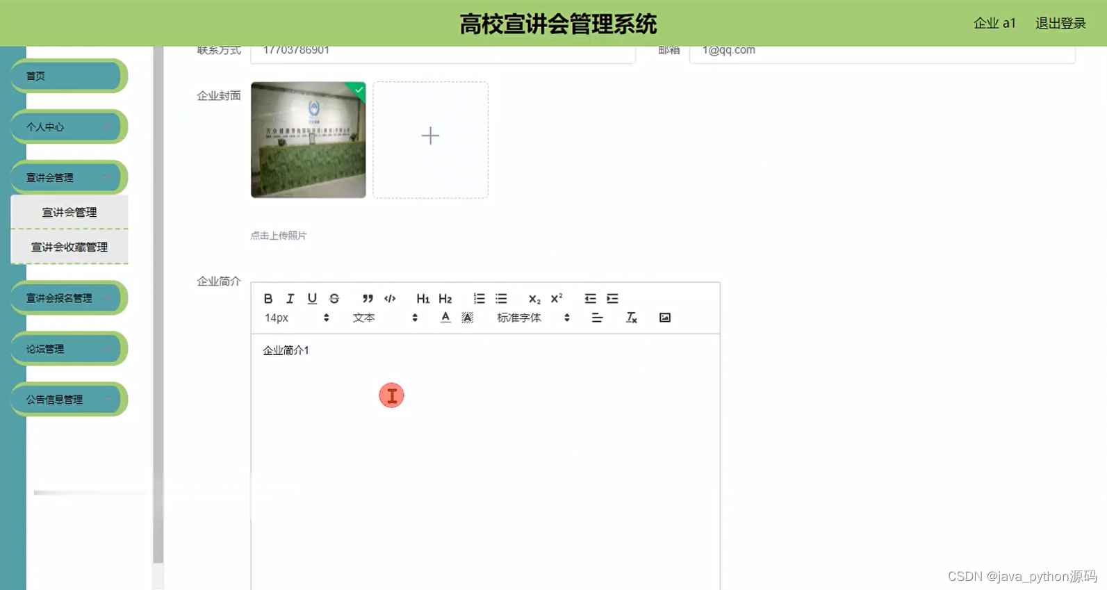 应届生高校宣讲会系统是在当前就业形势下,为了帮助应届毕业生更好地了解企业、拓展就业渠道、提高就业效率而设计的一个平台。该系统的背景是,随着大学毕业生数量的逐年增加,就业压力也在不断加大。同时,许多企业对于人才的需求也在不断增长,希望通过高校宣讲会这样的形式,与应届毕业生进行面对面的交流,吸引优秀的人才。因此,应届生高校宣讲会系统的目的和意义就体现在这里。