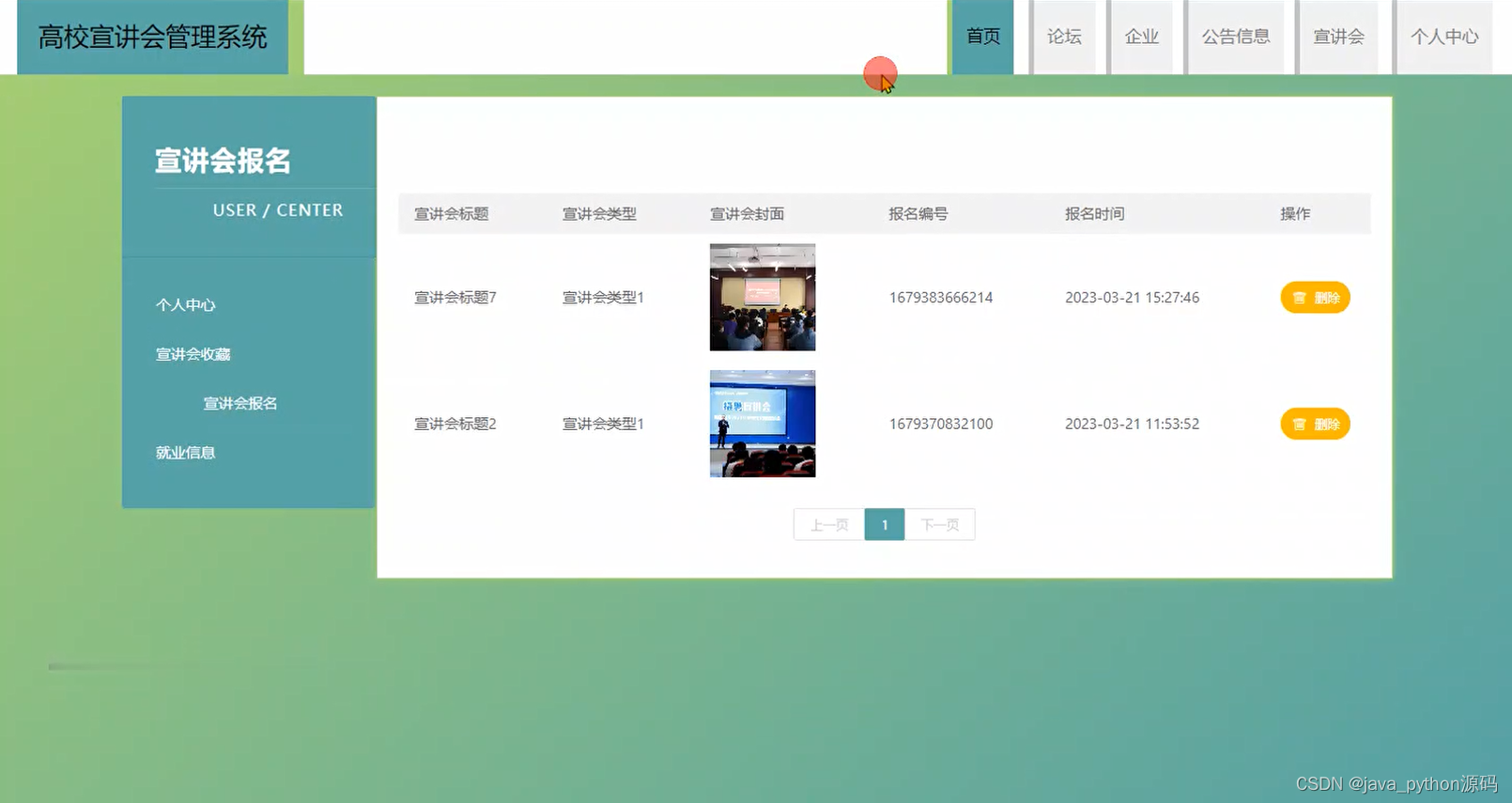 3. 宣传会报名:这部分是应届生高校宣讲会系统的一个重要功能,应届毕业生可以通过这个系统报名参加宣讲会。企业也可以通过这个系统收集报名信息,以便于组织宣讲会。
