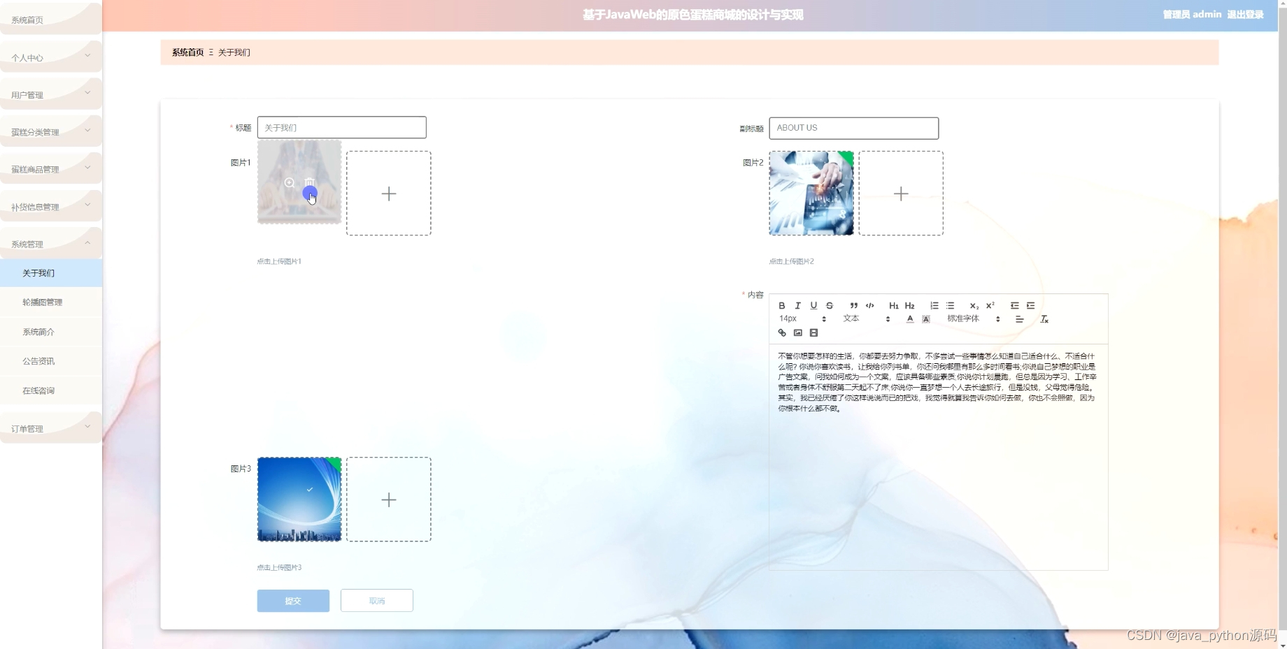 - 推动电子商务发展:本课题的研究和实践有助于推动电子商务在蛋糕销售领域的应用和发展,为相关行业的数字化转型提供有益的探索和借鉴。