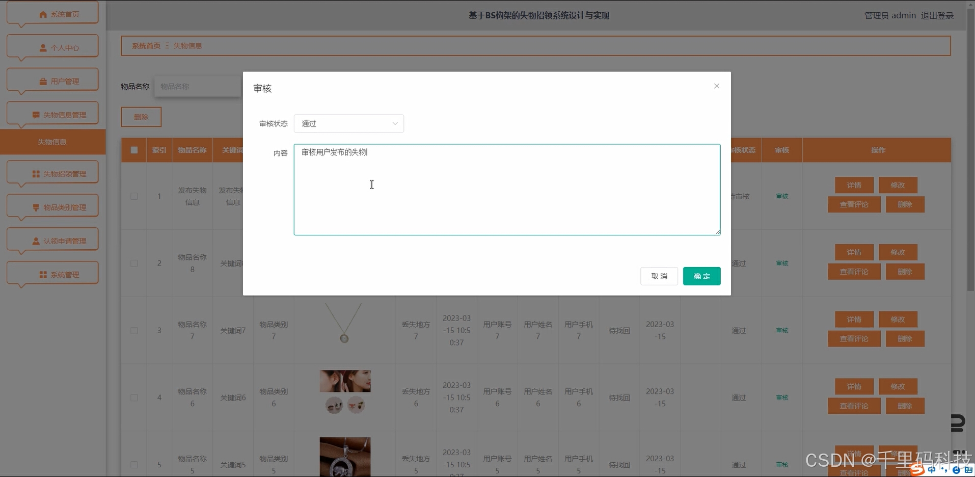 首先,要掌握有关系统的基本理论,如 Java语言、 MySQL数据库等,并对其进行全面的分析。为了给系统打下坚实的技术基础,本系统采用了 MySQL数据库的架构,在开始这项工作前,首先要设计好要用到的数据库表。该系统的使用者有二类:管理员和用户,主要功能包括个人信息修改,用户、失物信息、失物招领、物品类别、认领申请等功能[7]。