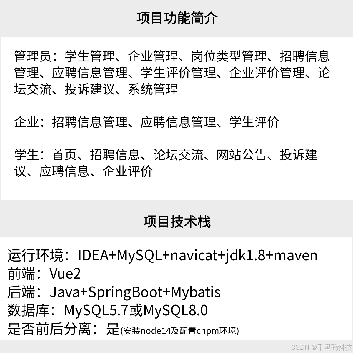 结合 SpringBoot(后端)和 Vue(前端),实现前后端分离开发,提升系统的可维护性和扩展性,为类似项目提供参考案例。