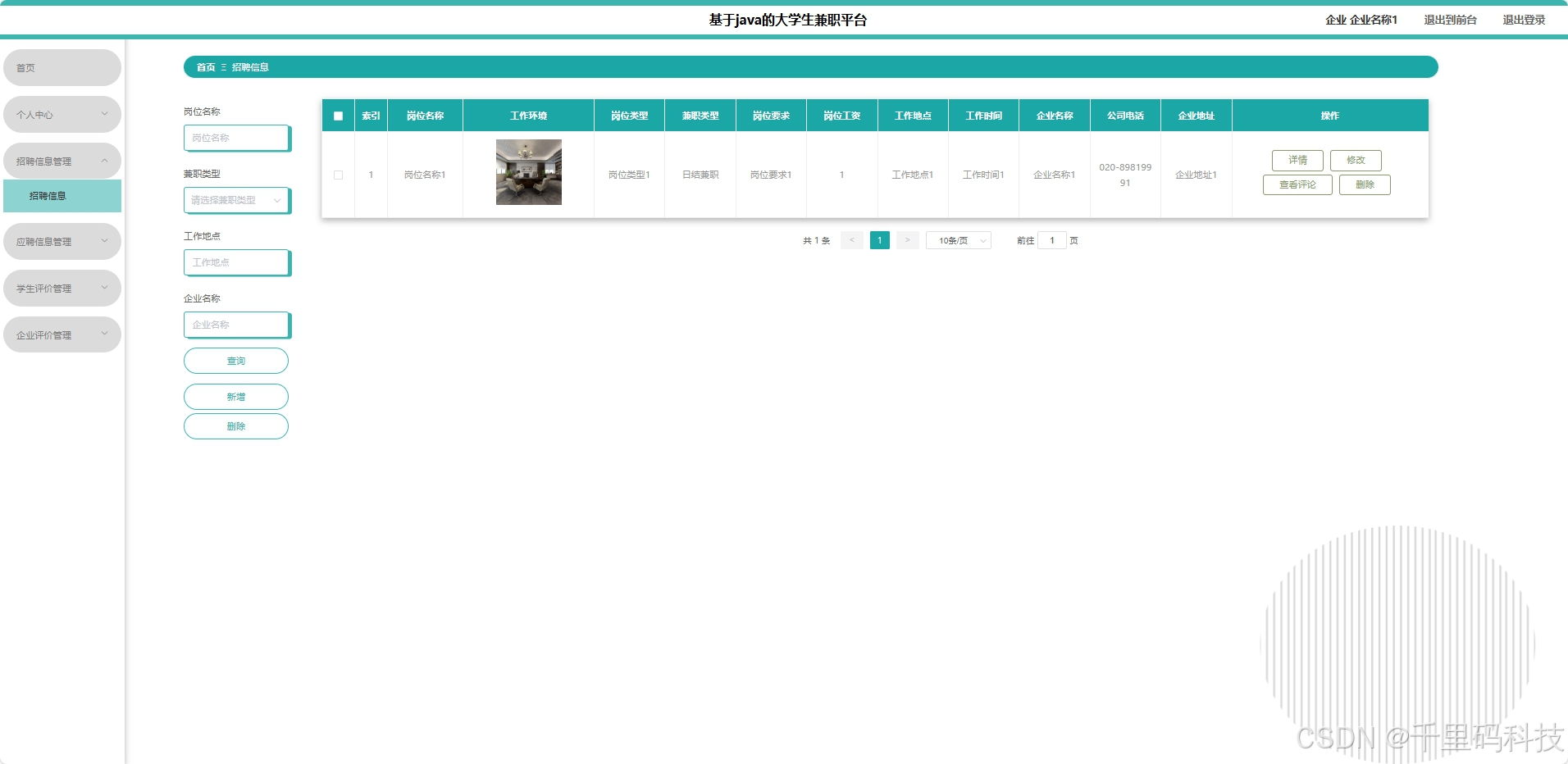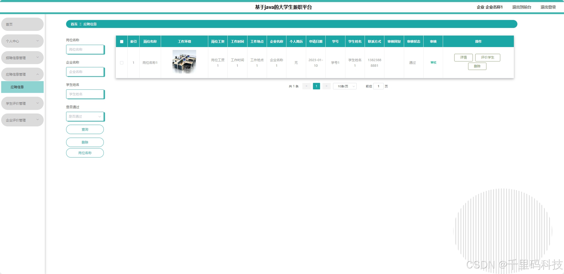 SpringBoot 和 Vue 作为当前主流的技术框架,具有开发效率高、扩展性强等特点,能够快速构建高性能的企业兼职招聘系统。该系统可实现兼职岗位发布、在线申请、简历筛选、面试安排等功能,优化企业与求职者之间的匹配流程。