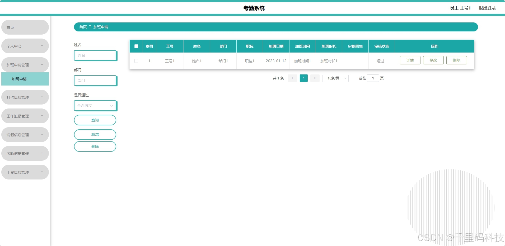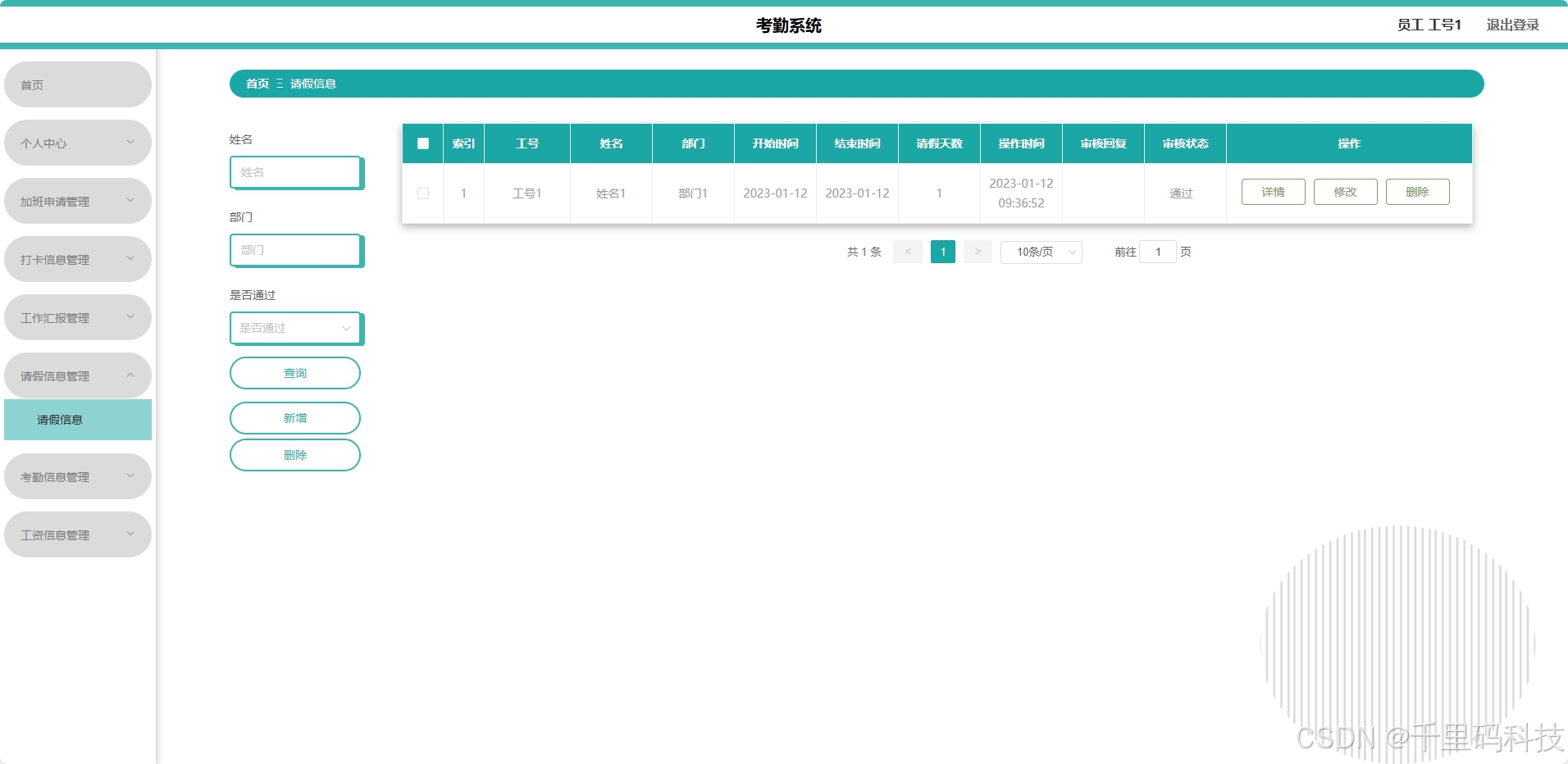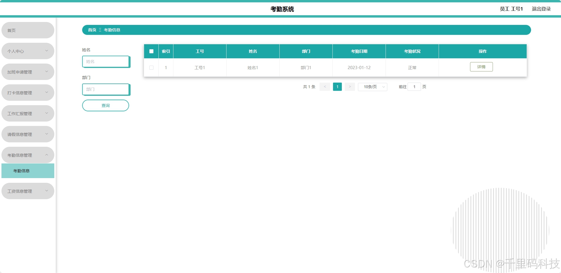 - 前端(Vue):响应式界面设计,提升用户体验,便于实时展示考勤数据。