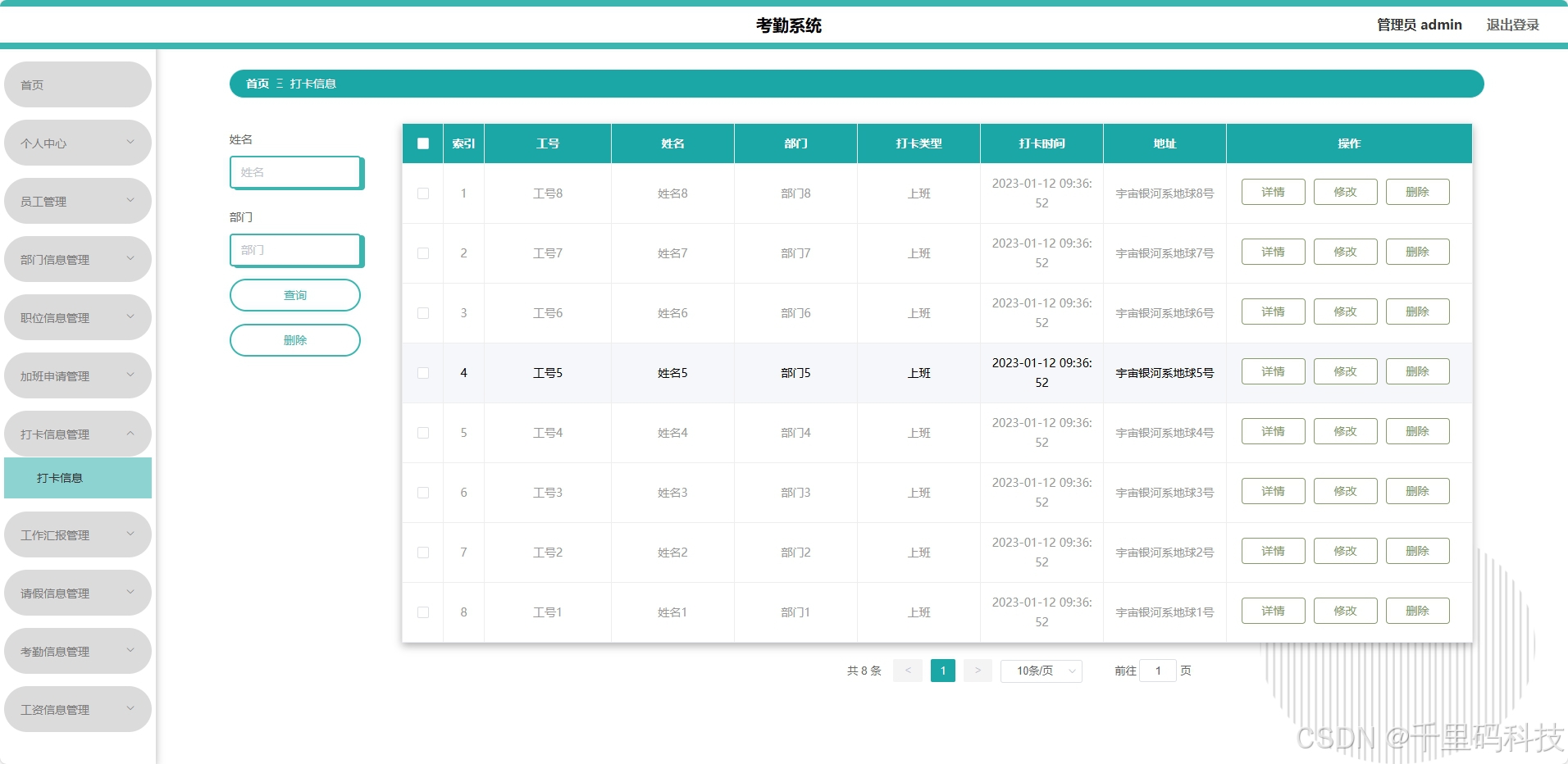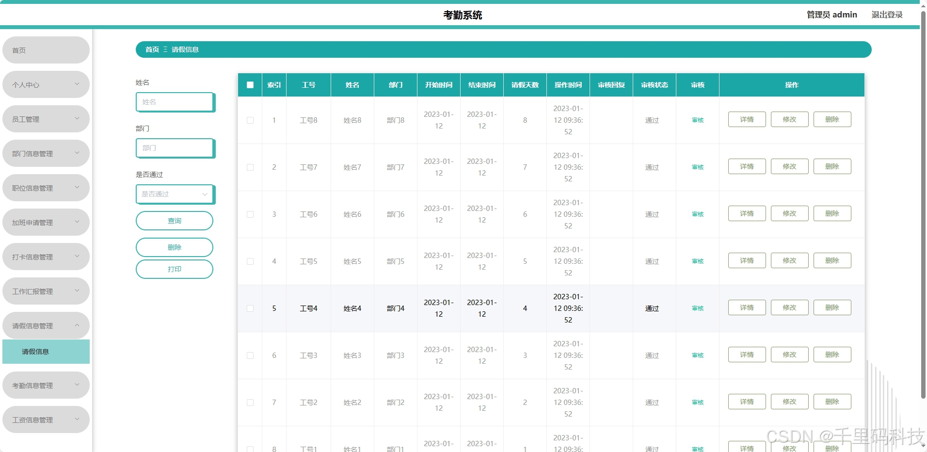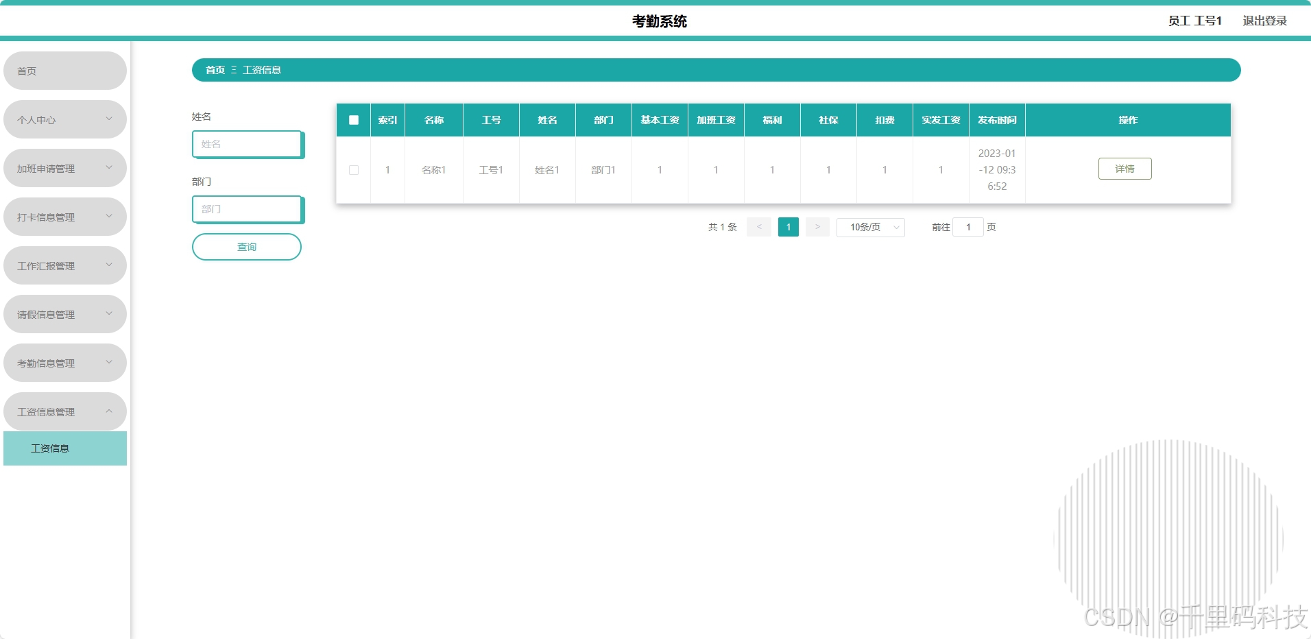 - 前端(Vue):响应式界面设计,提升用户体验,便于实时展示考勤数据。