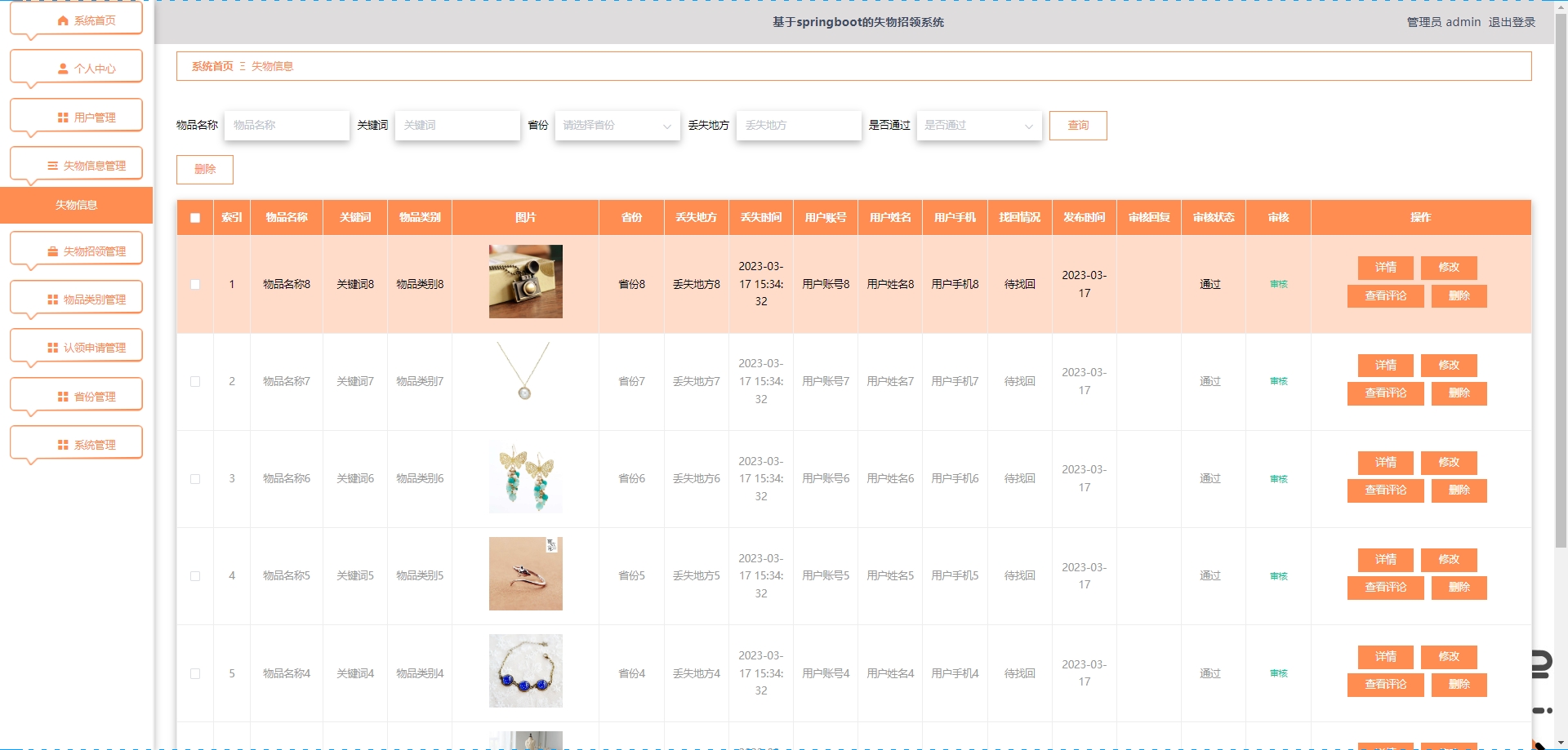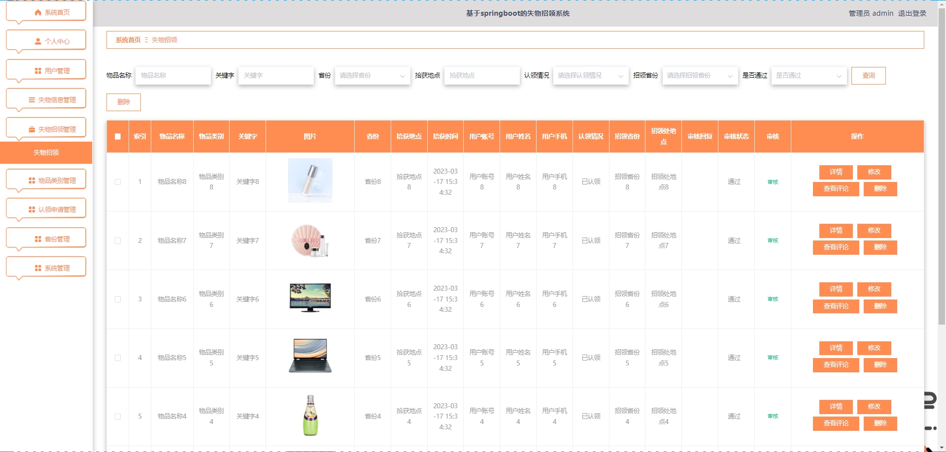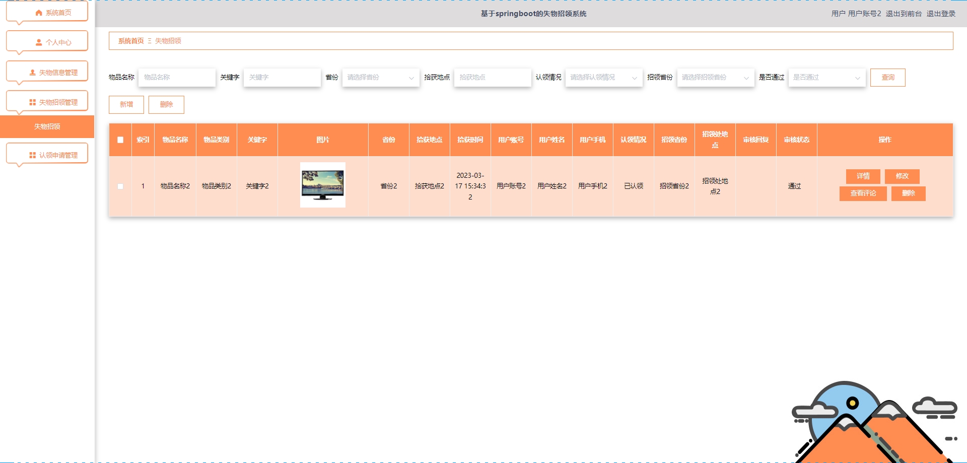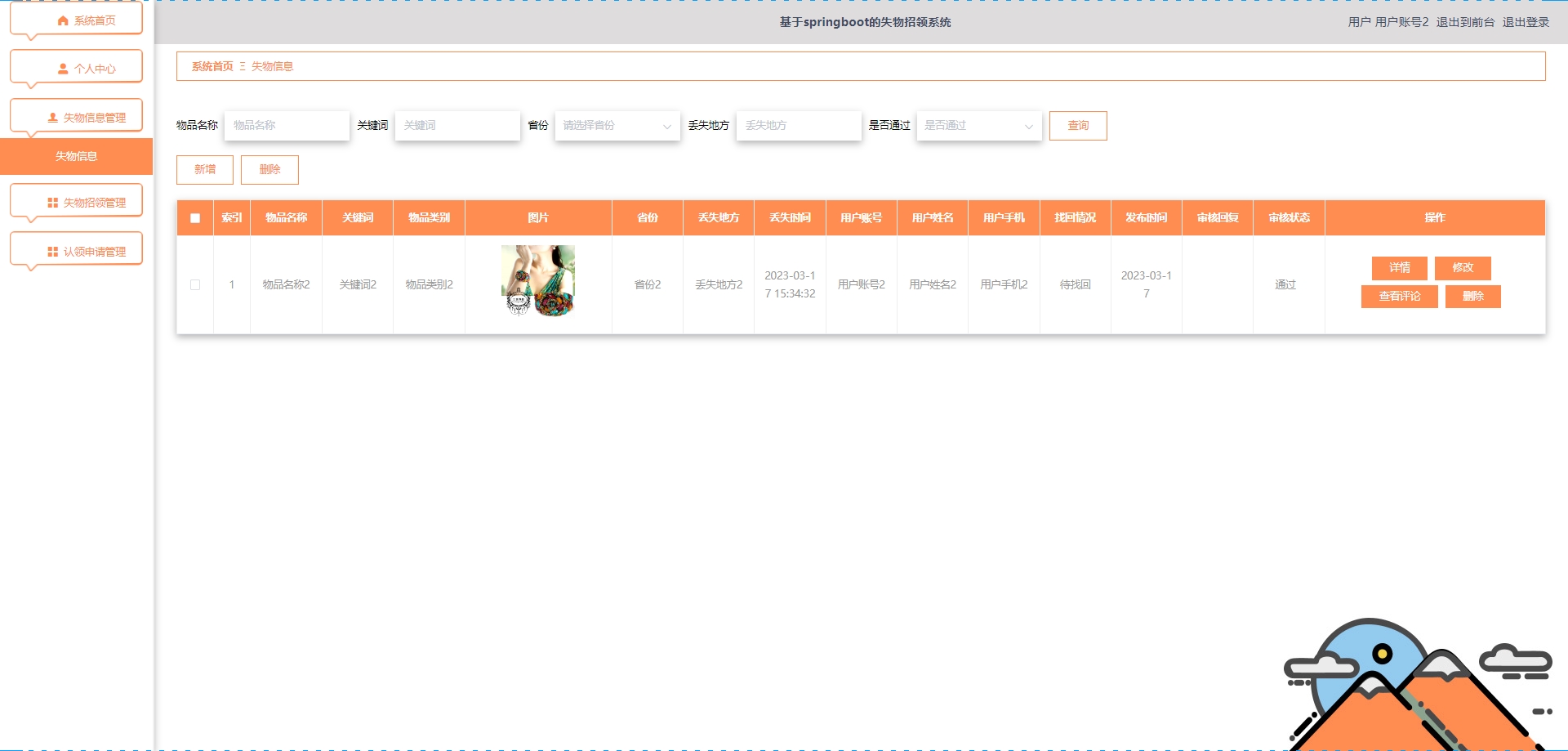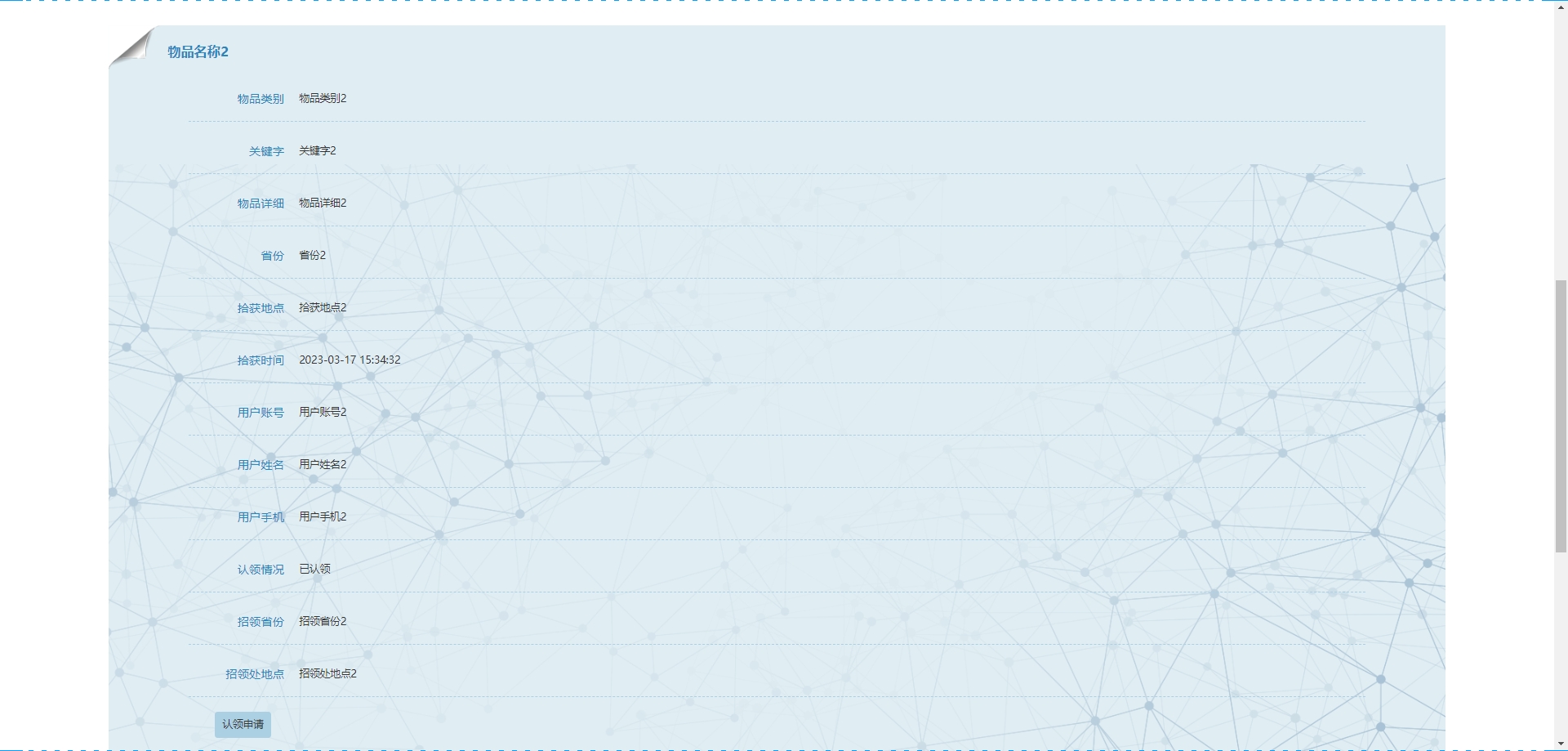 用户可发布丢失物品信息,包括物品名称、丢失地点、时间、图片等。后端接口接收表单数据并存入数据库。