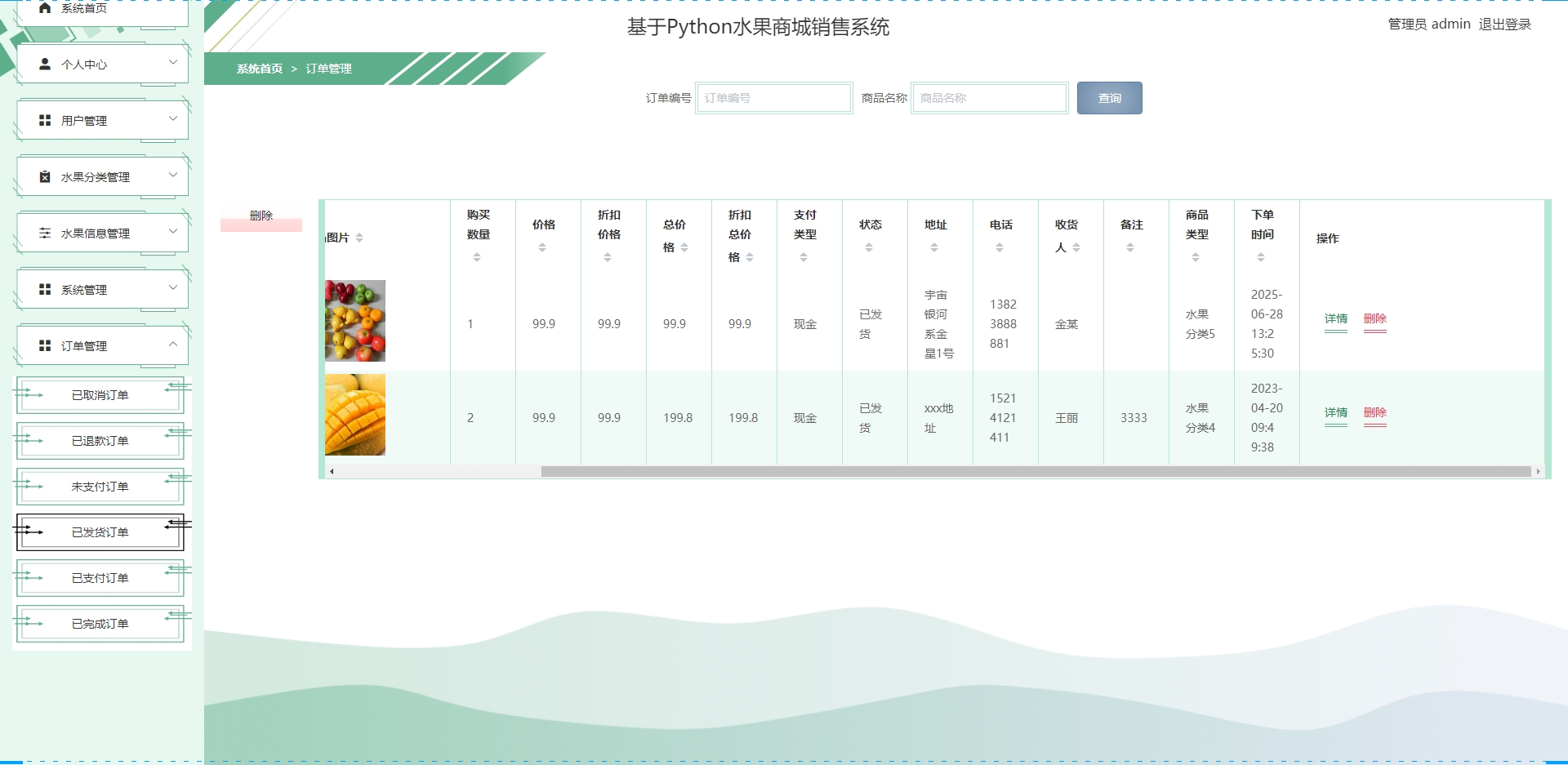 - 农户端:商品上架、订单管理。