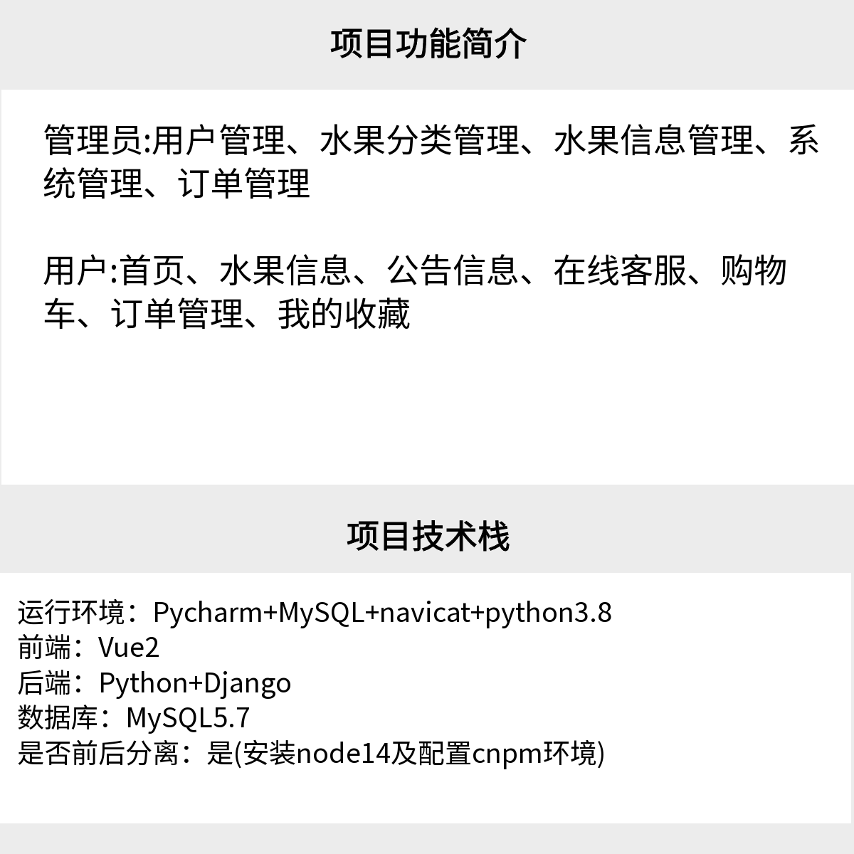 - 消费者端:商品浏览、在线支付、评价反馈。