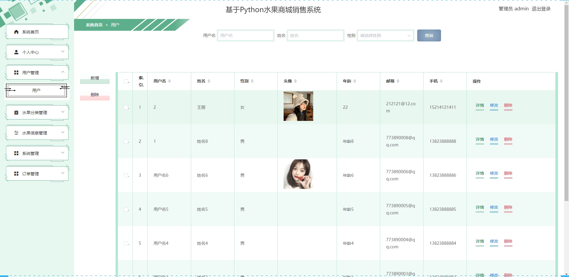 - 系统管理:用户权限控制。