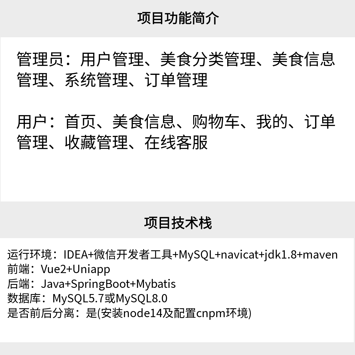 餐饮行业对线上点餐系统的需求显著增长。消费者期望通过小程序实现菜品浏览、在线支付、订单跟踪等功能,而商家需要管理订单、库存及用户数据。Spring Boot + Vue 的技术组合能够满足高并发、实时数据更新的业务场景,同时降低开发和维护成本。