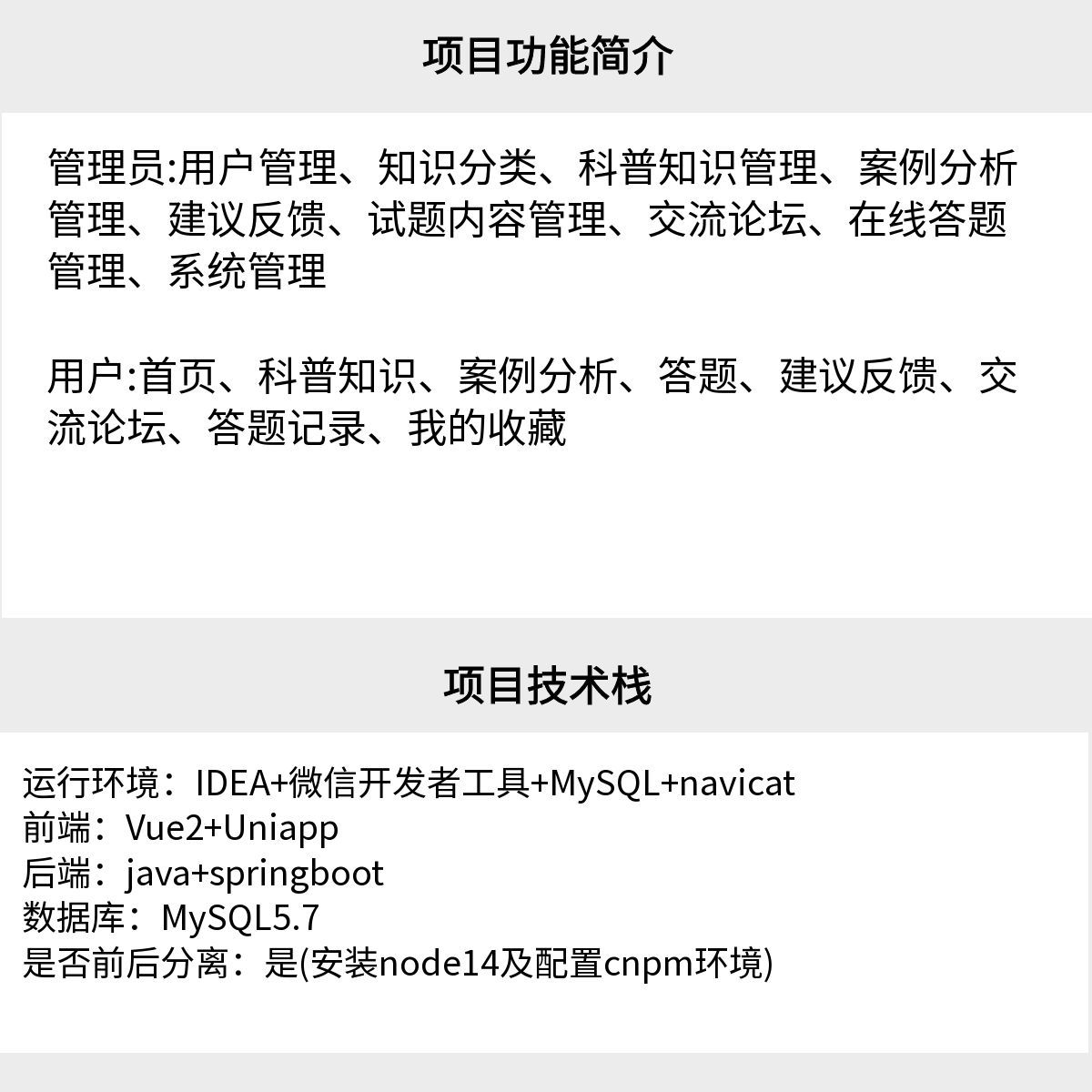 前后端分离设计便于功能迭代,例如未来集成AI问答、用户学习路径分析等模块。同时,SpringBoot的微服务特性支持横向扩展,适应流量增长。