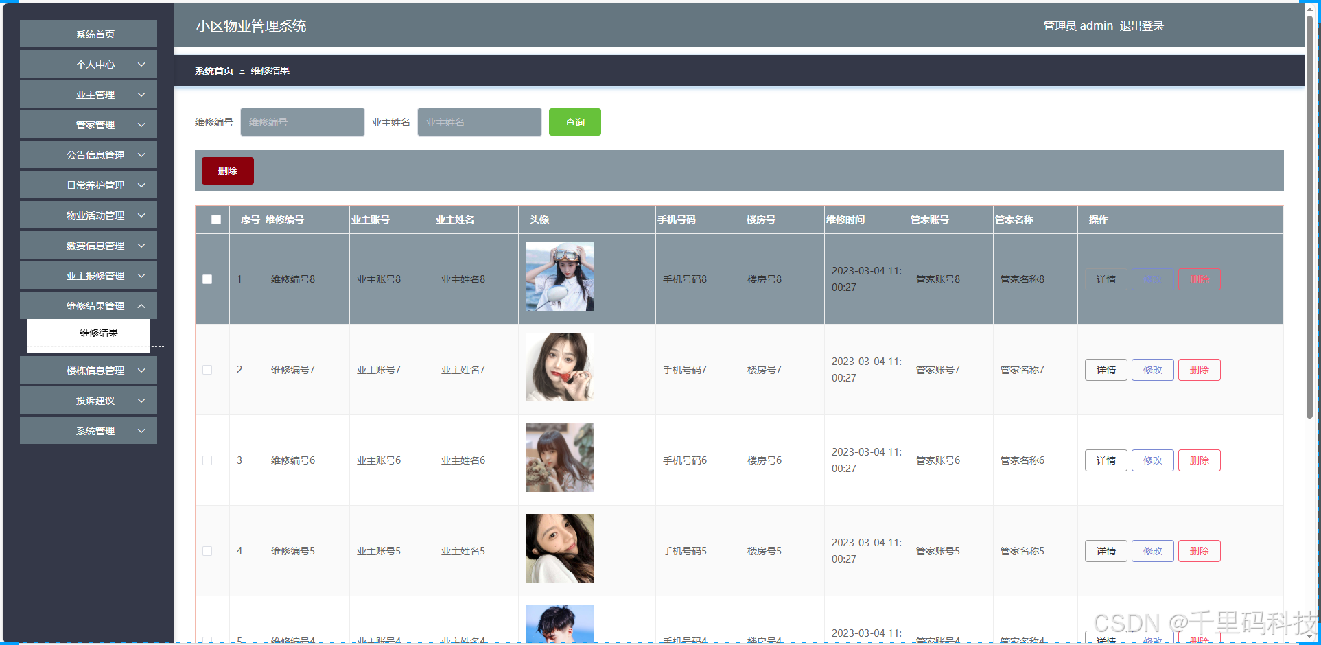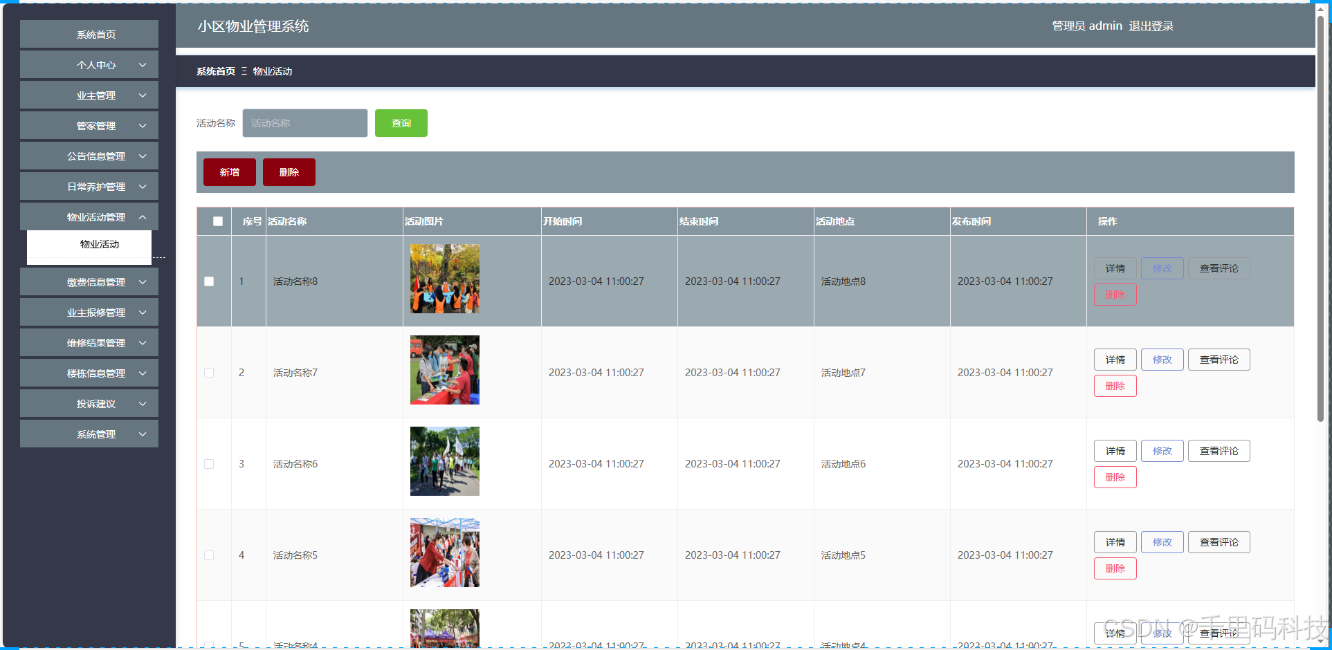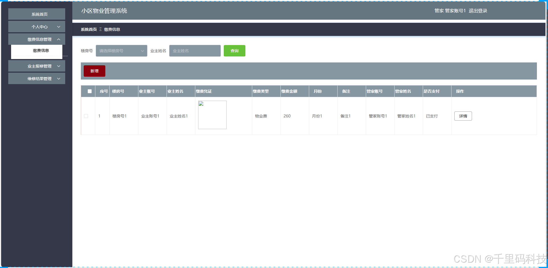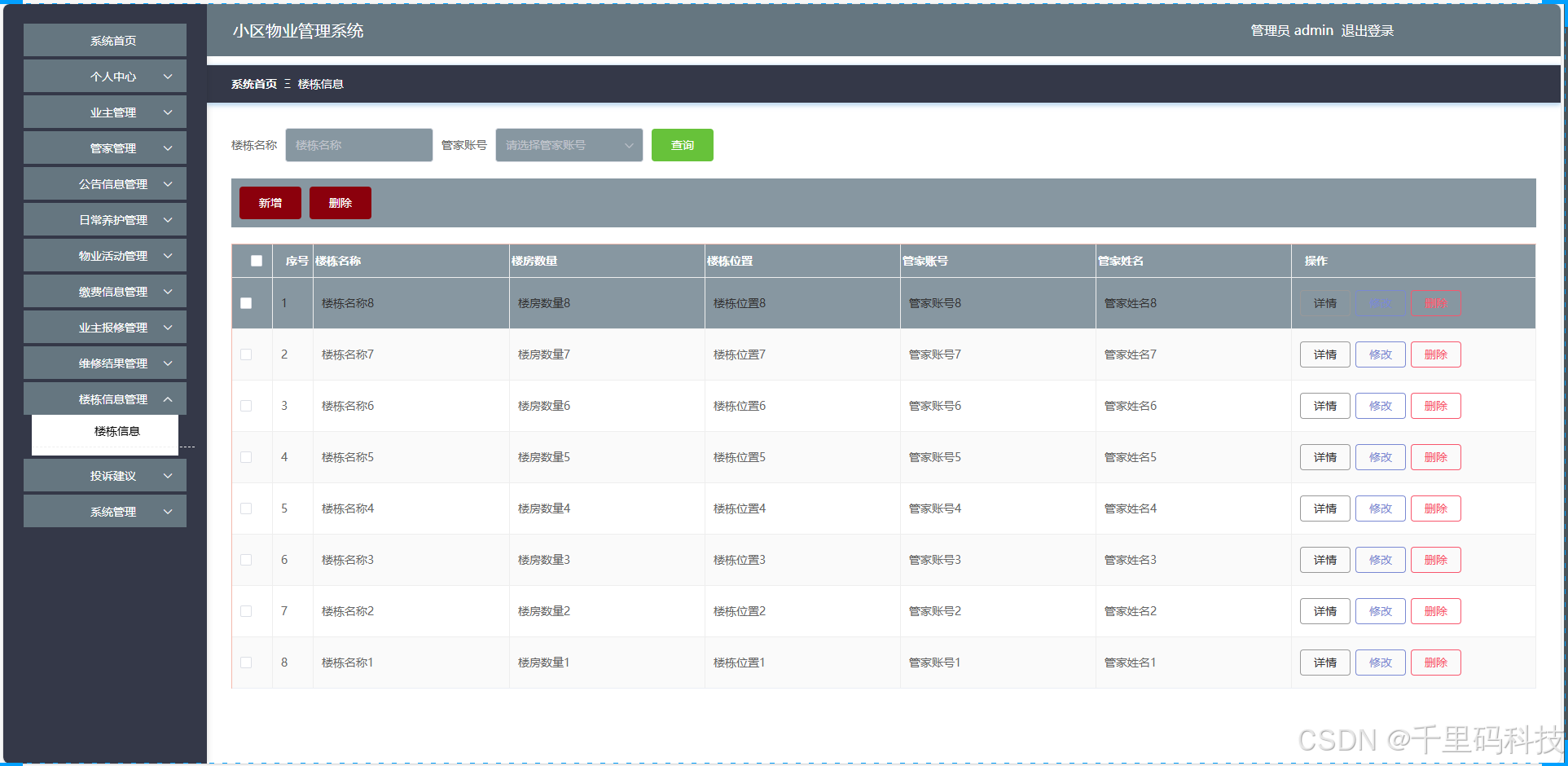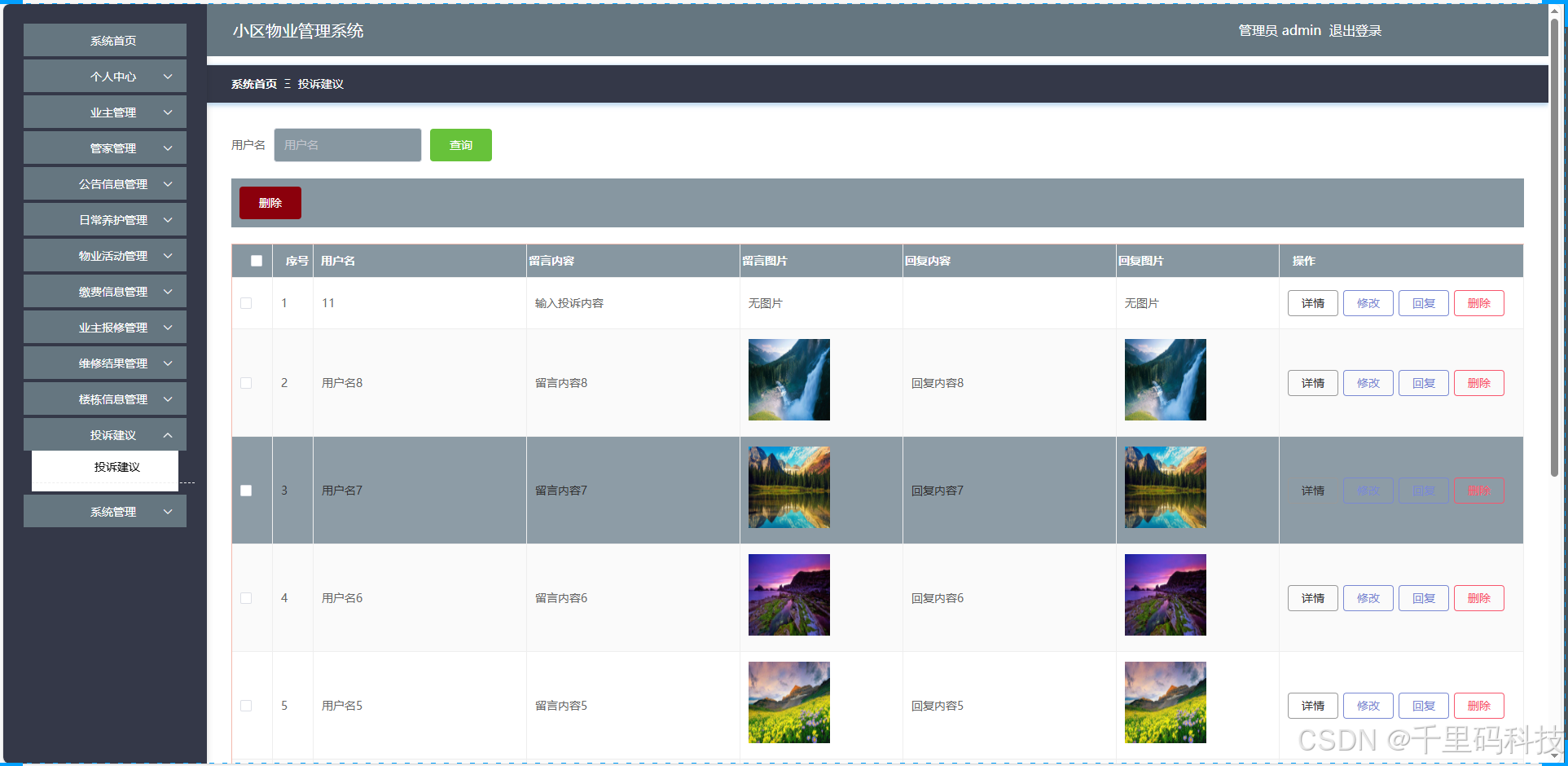 - Spring Boot:作为 Java 领域的快速开发框架,简化了后端服务的配置和部署,内置 Tomcat 等服务器,支持 RESTful API 开发,适合构建物业管理系统的核心业务逻辑(如住户管理、缴费、报修等)。