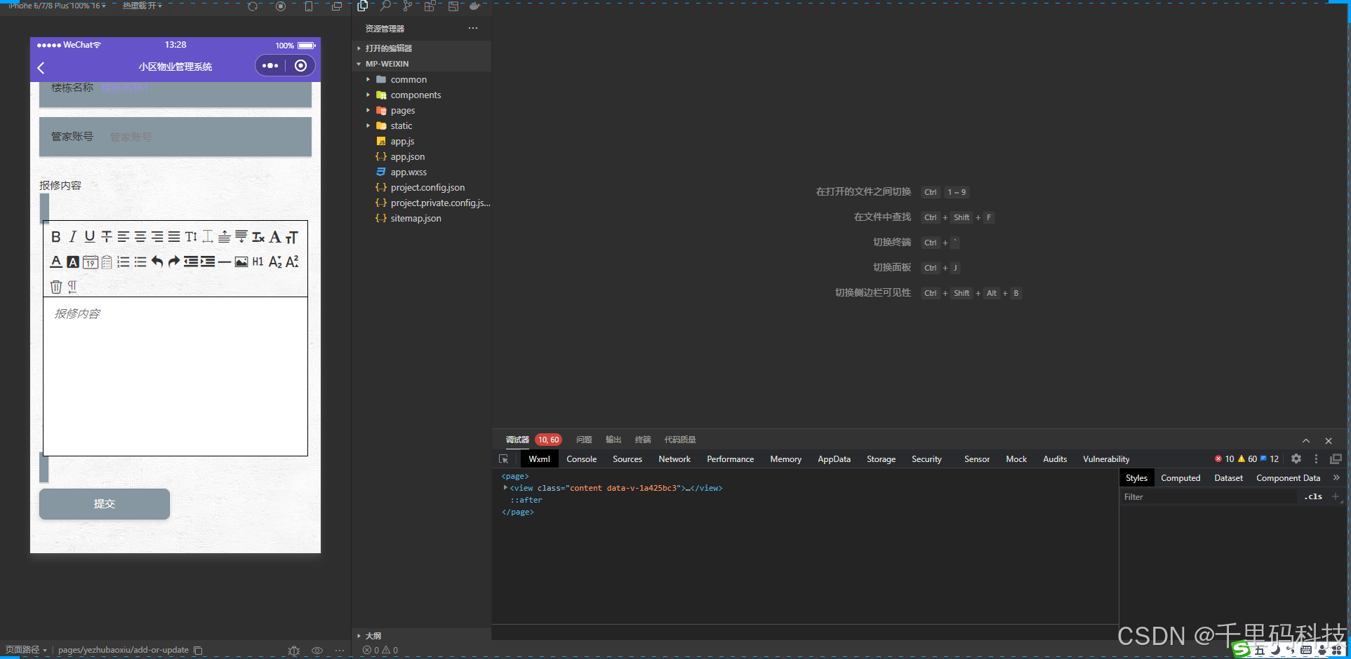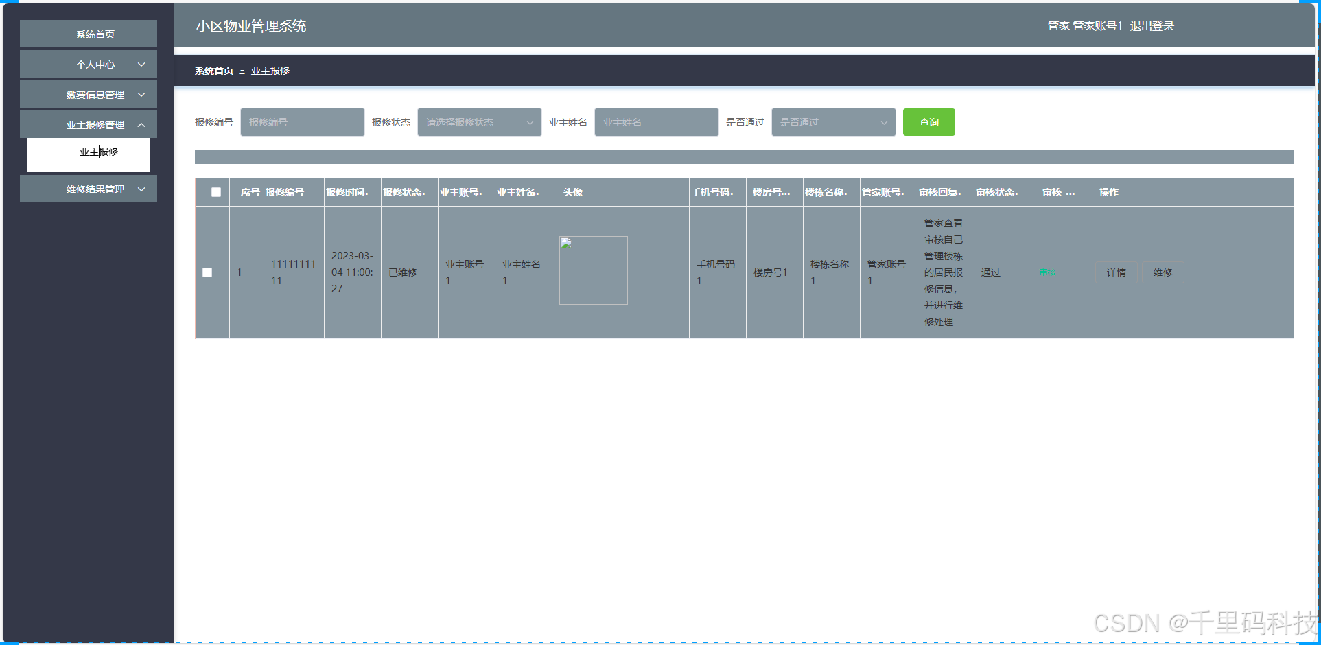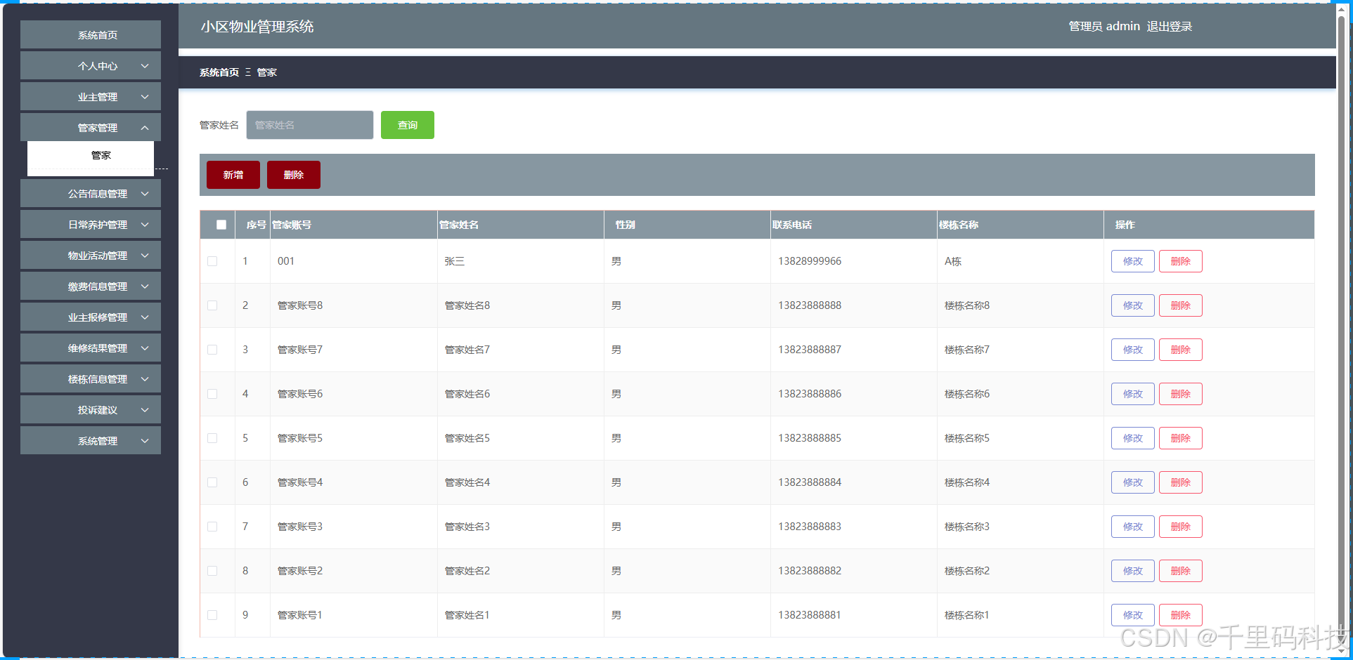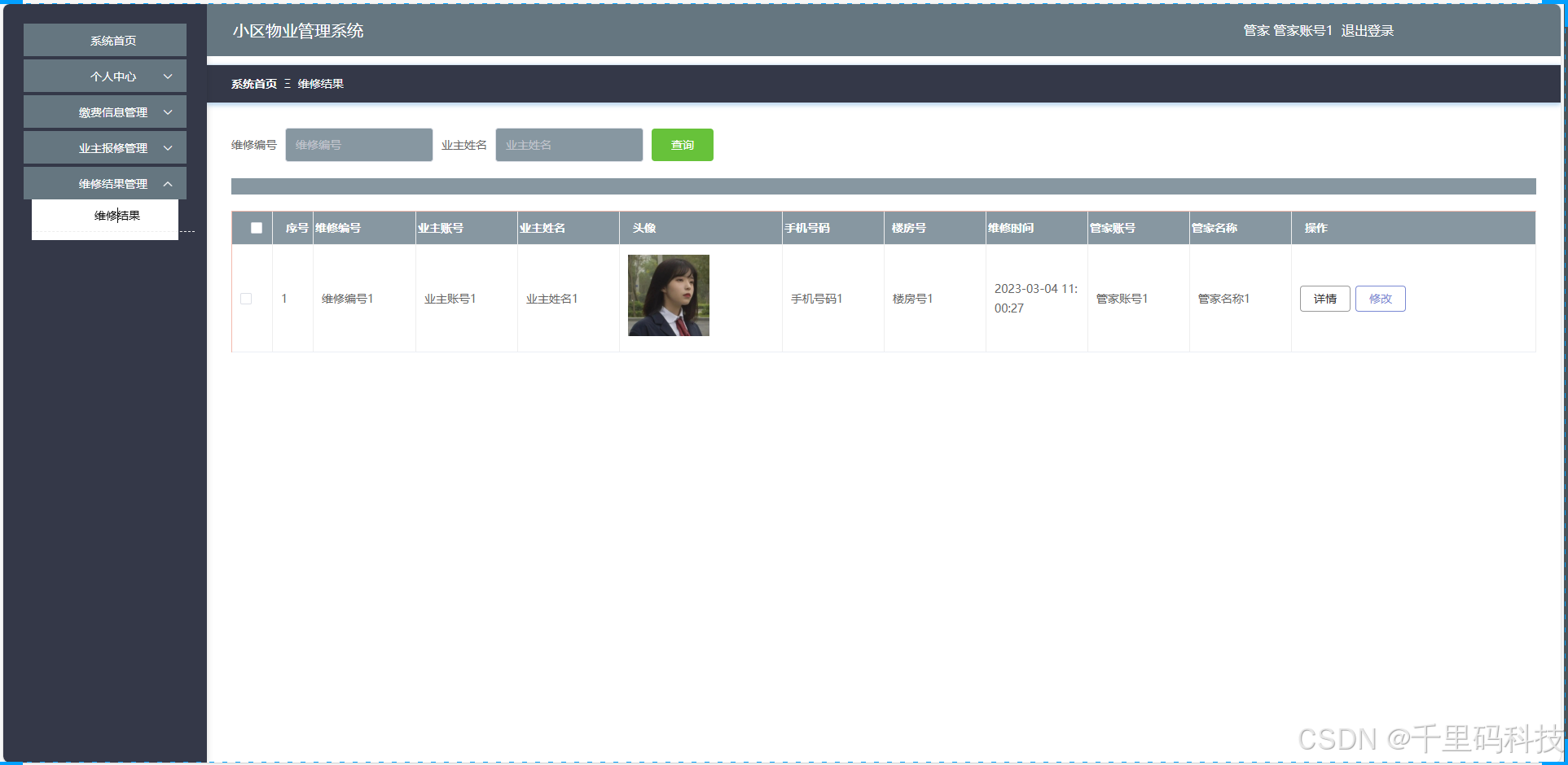 - Spring Boot:作为 Java 领域的快速开发框架,简化了后端服务的配置和部署,内置 Tomcat 等服务器,支持 RESTful API 开发,适合构建物业管理系统的核心业务逻辑(如住户管理、缴费、报修等)。