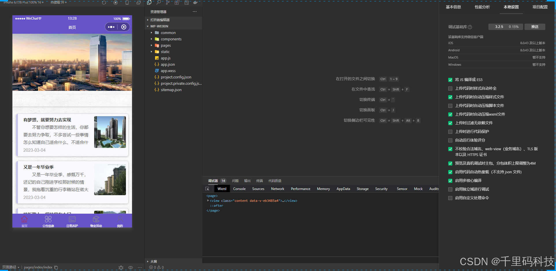 - Vue.js:前端框架,基于组件化开发,响应式数据绑定,能够快速构建用户友好的交互界面,适合移动端小程序场景。
