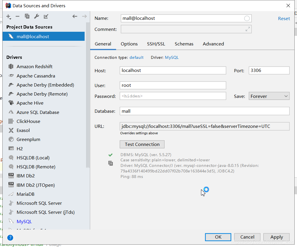 测试连接 ,注意加后缀?useSSL=false&serverTimezone=UTC