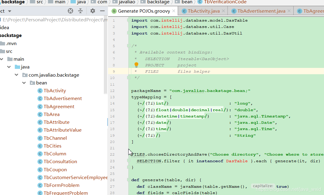 由于最近做的一个分布式电商项目的后台有提到一个使用idea生成实体类,所以这里详细图文讲解一下
