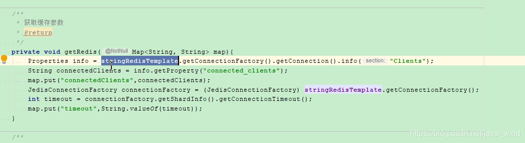 Properties info = stringRedisTemplate.getRequiredConnectionFactory().getConnection().info("memory");