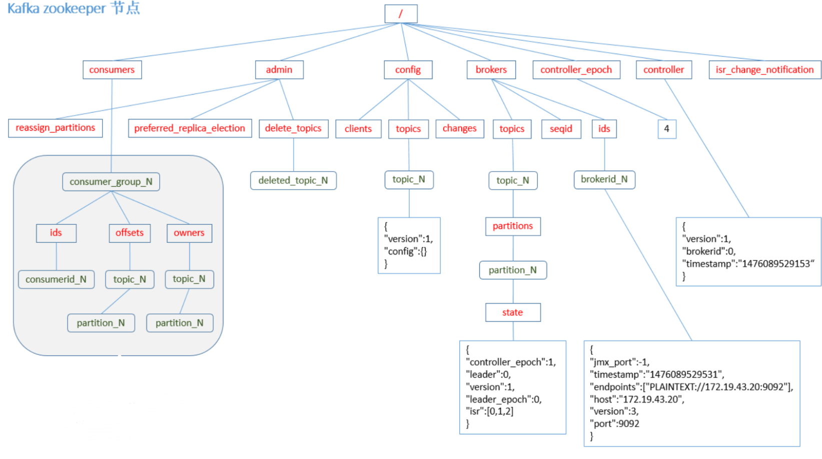 - 从Zookeeper中读取获取当前所有与topic、partition以及broker有关的信息并进行相应的管理。对于所有topic所对应的Zookeeper中的/brokers/topics/[topic]节点添加PartitionModificationsListener,用来监听topic中的分区分配变化。