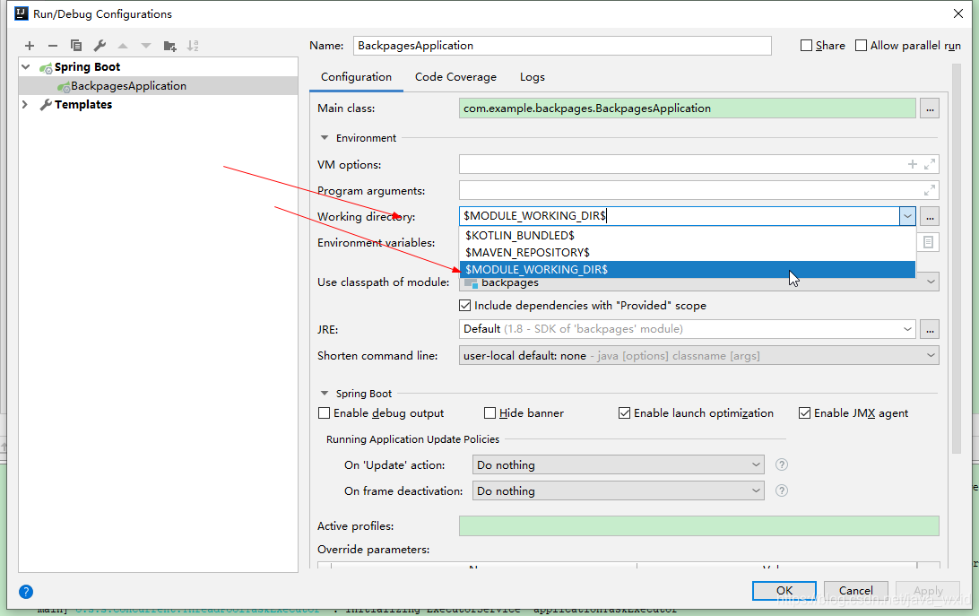 修改箭头所指的为当前内容即可。如何没有该选项,maven clean 和 compile 完毕即可看到该内容。