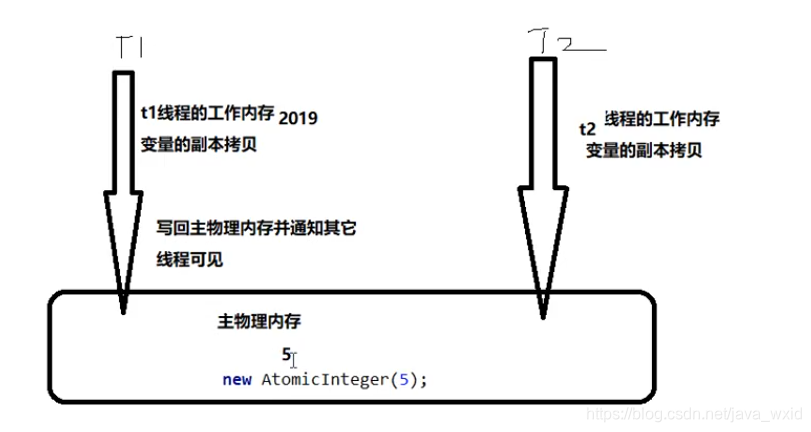 //原子类整型,在主内存中创建这个对象给初始值为5,默认初始值为0