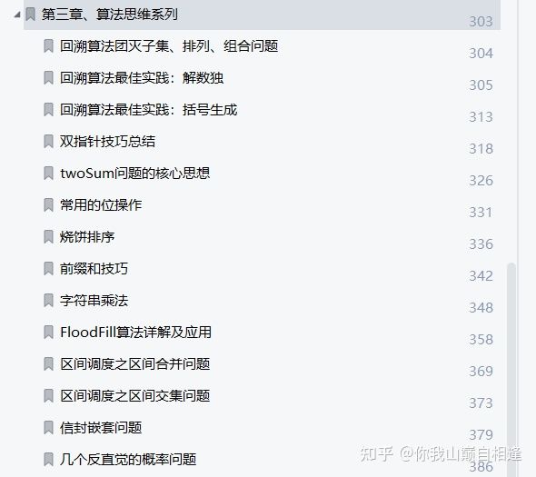 包含⼀些常⽤的算法技巧,⽐如前缀和、回溯思想、位操作、双指针、如何正确书写⼆分查找等等