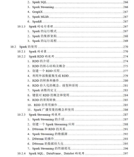 第10章讲解Spark原理及应用,涉及Spark特点、Spark模块组成、Spark运行机制,以及Spark RDD、Spark Streaming、Spark SQL、DataFrame、DataSet、Spark Structured Streaming的原理和使用等内容。