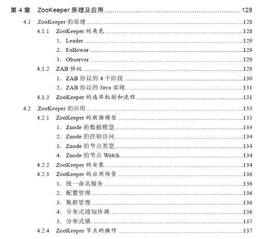 第4章讲解ZooKeeper原理及应用,涉及ZooKeeper原理、ZooKeeper选举机制、ZooKeeper数据模型和ZooKeeper应用场景等内容。