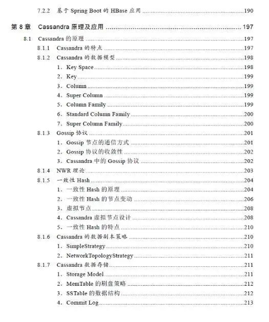 第8章讲解Cassandra原理及应用,涉及Cassandra数据模型、Gossip协议、NWR理论、一致性Hash、Cassandra数据副本策略和读写机制等内容。