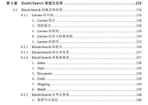 第9章讲解ElasticSearch原理及应用,涉及ElasticSearch数据模型、ElasticSearch分布式架构、ElasticSearch数据读写原理和段合并等内容。