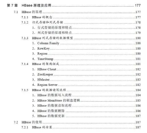 第7章讲解HBase原理及应用,涉及列式存储、HBase列式存储数据模型、HBase架构组成和HBase数据读写流程等内容。