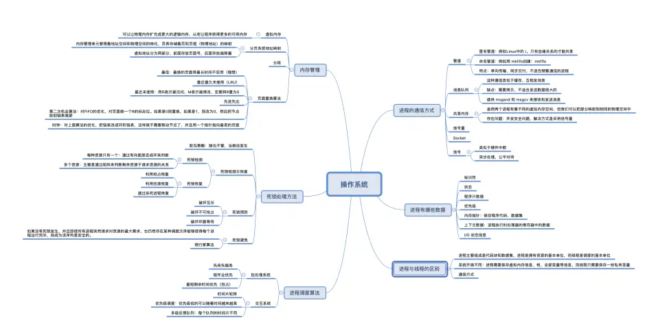 关于操作系统这一部分,其实问的内容并不多,主要是因为这一部分问来问去也都是那么几个同样的问题,例如线程通信,线程与进程区别,进程调度算法以及虚拟内存、物理内存等。所以,在这一方面,我也整理了一些相对核心的内容。
