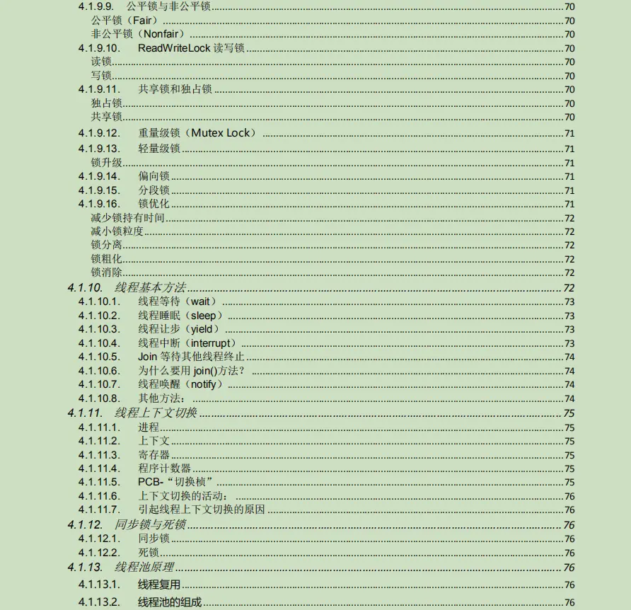 其实除了这九大核心专题以外,我还整理了其他相关的技术点合集,如Spring全家桶、调优、BAT等一线互联网大厂面试题,这一就不一一列出来了。