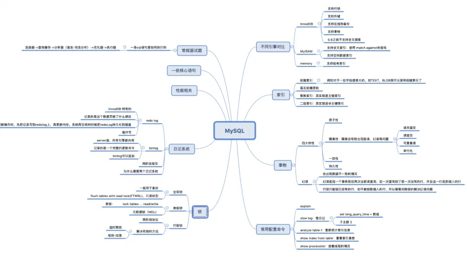 MySQL就更不用多说了,数据库不问基本上是不可能的,尤其是现在的互联网公司,基本都是用的MySQL,MySQL问得最多的自然就是索引、锁以及优化方式,当然还可能会问你一些命令,例如查看sql的执行计划,引擎之间的区别,自增主键优缺点,B+树等。