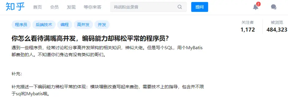 由此,高并发更容易和面试官搭上话,很多面试官也就擅长这个,也更容易抬薪资。如果想进入互联网企业,或者往上爬,高并发开发经验一定是能给自己增添光彩的,面试的机会也是更多。
