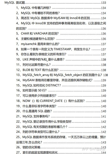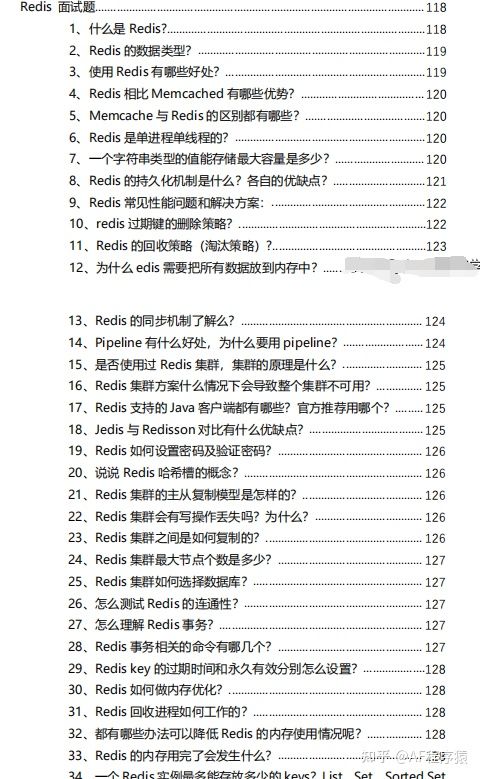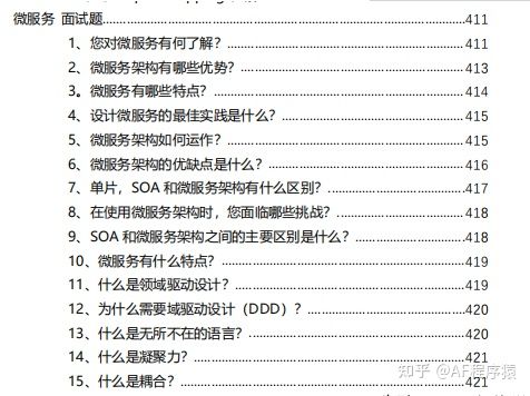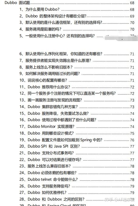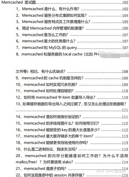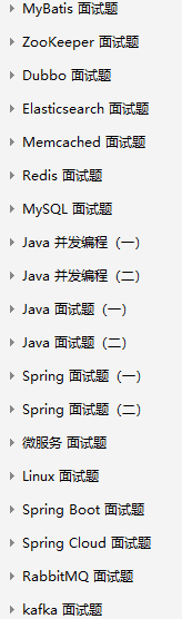 这份PDF面试文档包含了Kafka、RabbitMQ、Linux、Spring、SpringBoot、SpringCloud、SpringMVC、微服务、并发编程、MySQL、Redis、Memcached、Elasticsearch、Dubbo、Zookeeper、Mybatis、算法与数据结构等,由于篇幅有限,这里以图片方式给到大家观看。