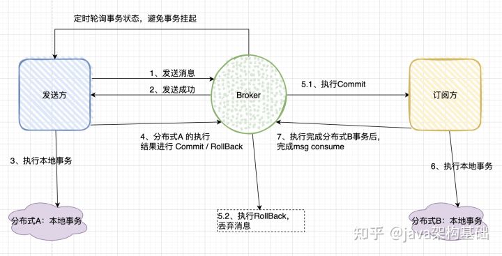 利用消息中间件来异步完成事务的后半部分更新,实现系统的最终一致性。这个方式避免了像XA协议那样的性能问题。