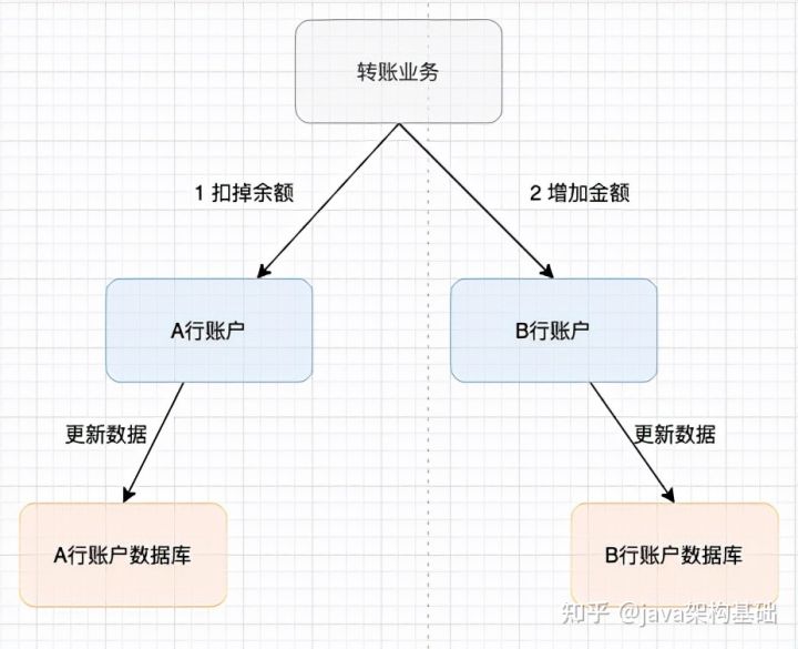 跨行转账问题也是一个典型的分布式事务,用户A同学向B同学的账户转账500,要先进行A同学的账户-500,然后B同学的账户+500,既然是不同的银行,
