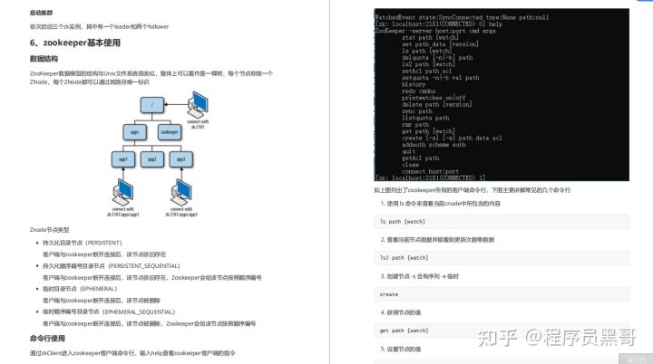 最近小编整理了程序员必会的高薪技能,一线架构师的Zookeeper+dubbo分布式架构笔记,笔记全面讲解ZooKeeper技术栈,从集群的部署到技术的应用,再到案例实战,在学习理论知识的同时,还可以学习到使用ZooKeeper如何解决实际的问题,课程包含ZooKeeper的基本操作、集群搭建、常用JavaAPI、CuratorAPI、服务监控等理论知识,并且讲解配置中心、分布式锁原理、分布式ID生成器等常见企业级应用,相信一定会为你的工作提供不少帮助。