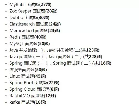 内容涵盖:Java、MyBatis、ZooKeeper、Dubbo、Elasticsearch、Memcached、Redis、MySQL、Spring、Spring Boot、Spring Cloud、RabbitMQ、Kafka、Linux等技术栈……