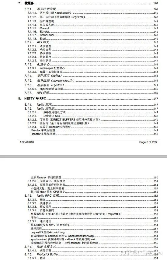 由于文案过于长,在此就不一一介绍了,核心知识总结知识点除此之外还包括有Netty与 RPC 、网络、日志 、Zookeeper 、Kafka 、RabbitMQ 、Hbase 、MongoDB、Cassandra 、24种设计模式、负载均衡、数据库、一致性算法、Java算法、数据结构、分布式缓存等等知识详解。
